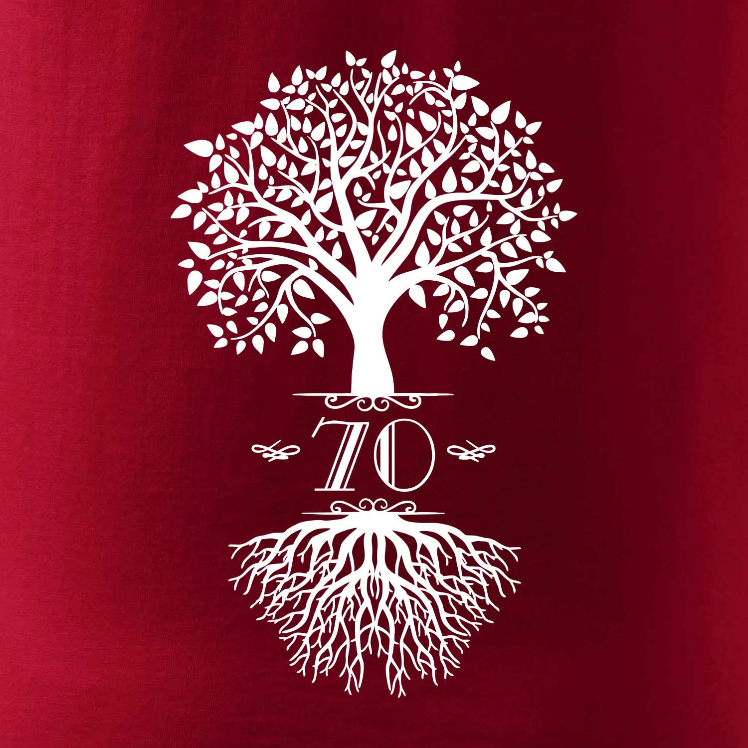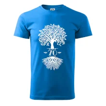 Narozeninové triko pro oslavence, který slaví jubileum 70 let. Triko se stromem. Dárek k sedmdesátinám. Triko k sedmdesátým narozeninám.