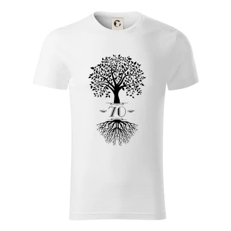 Narozeninové triko pro oslavence, který slaví jubileum 70 let. Triko se stromem. Dárek k sedmdesátinám. Triko k sedmdesátým narozeninám.