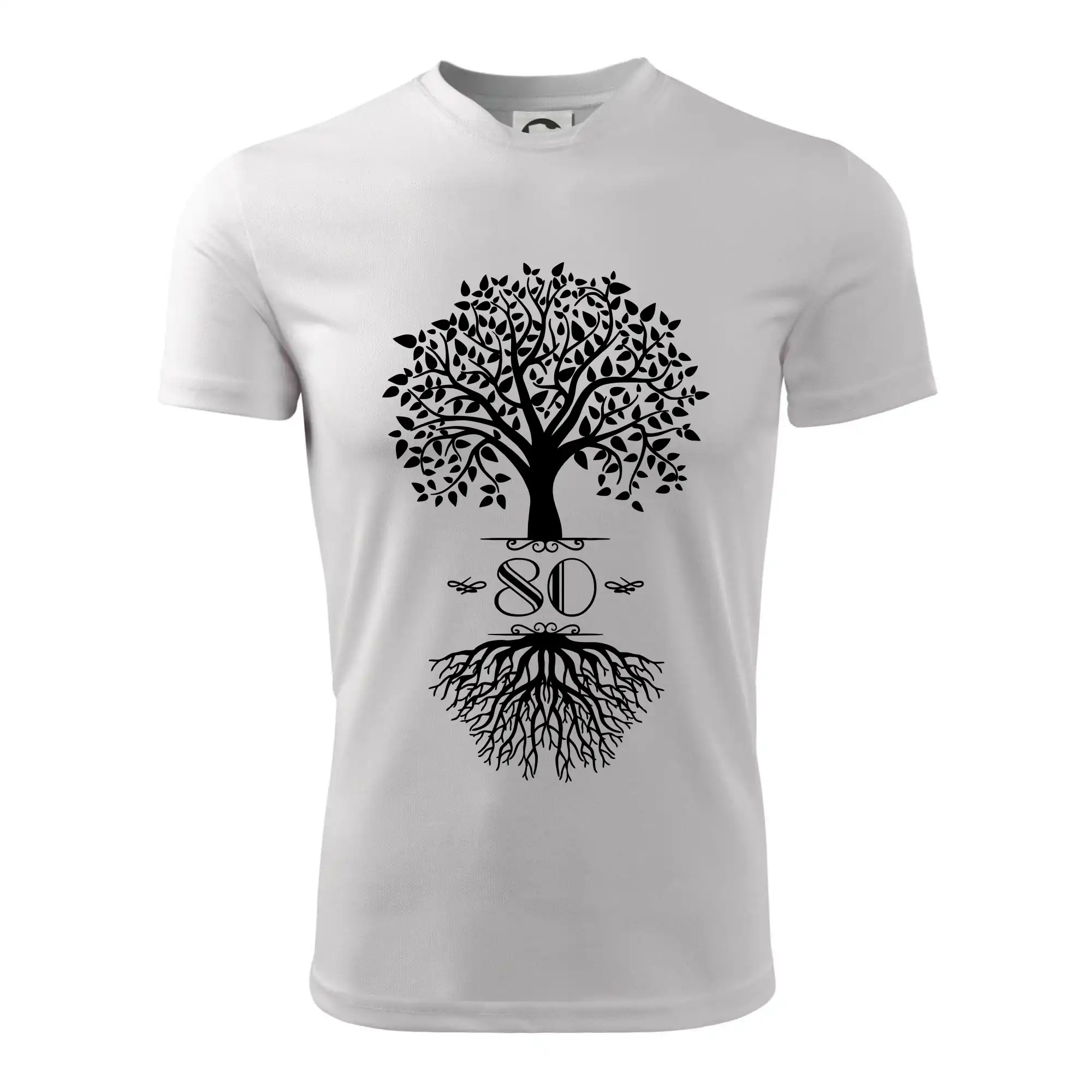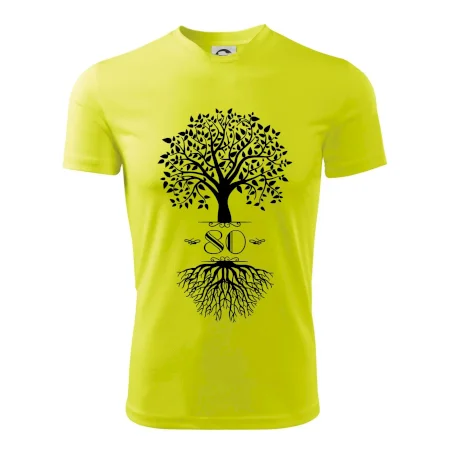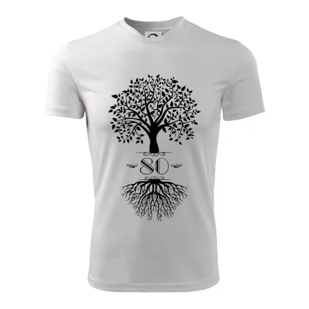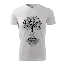 Narozeninové triko pro oslavence, který slaví jubileum 80 let. Triko se stromem. Dárek k osmdesátinám. Triko k osmdesátým narozeninám.