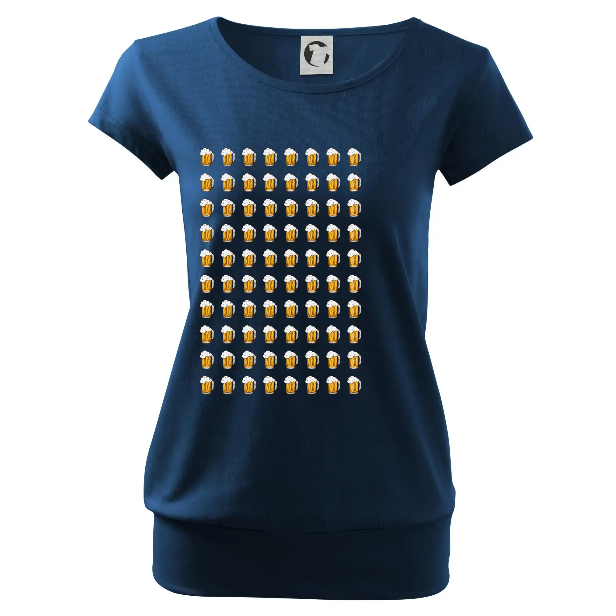 Trendové dámské triko s velmi krátkým rukávem, volnějšího střihu, v dolním kraji všité do širokého lemu. Kulatý průkrčník s úzkým lemem ze shodného materiálu.