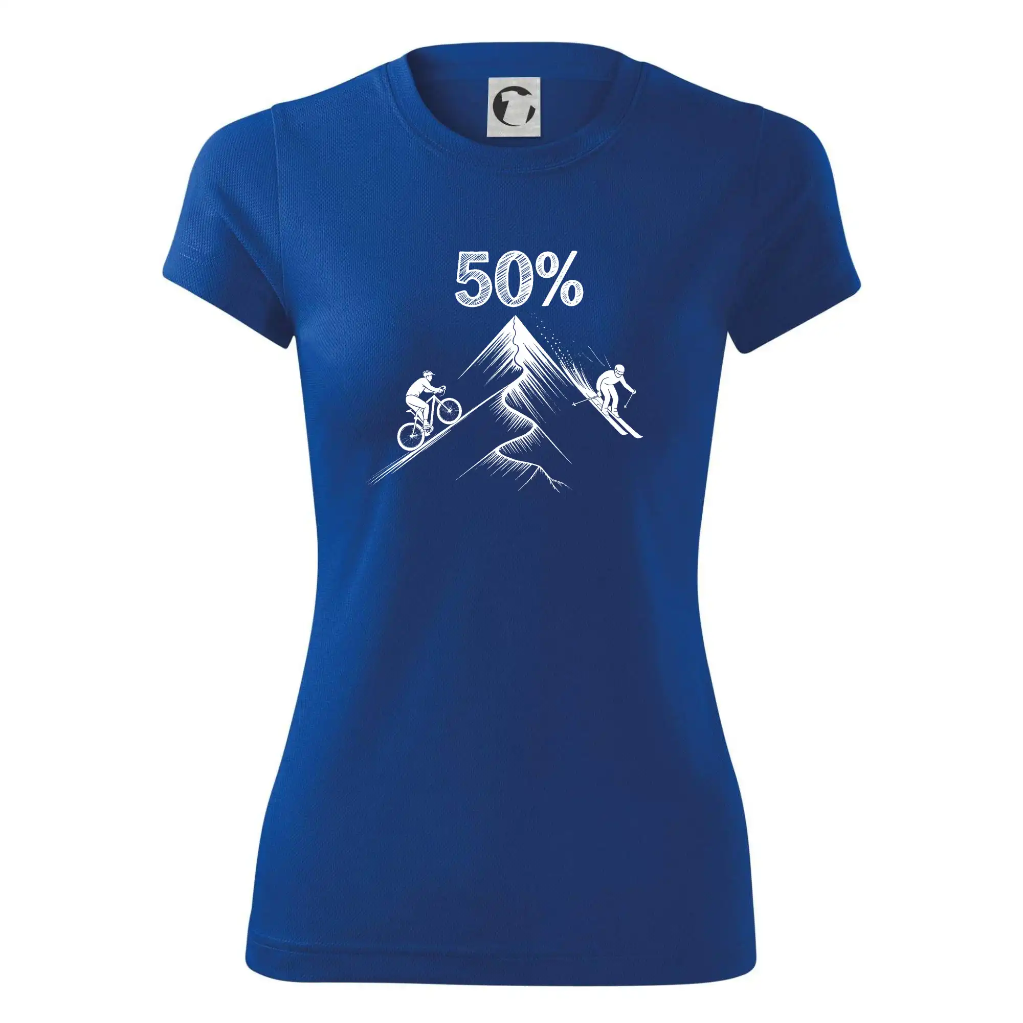 Tento motiv je parádní volba pro každého cyklistu, lyžaře nebo sportovce, který slaví půlstoletí na světě! Středový kruh zdobí výrazná číslice 50, kterou lemují stylizované obrázky kola a lyží – jasná zpráva všem kolem: tahle životní trasa vede přes trail i sjezdovku v plné parádě! Kombinace sportovních symbolů a moderní typografie dodává tričku energii a svěžest, která sluší každému dynamickému oslavenci.