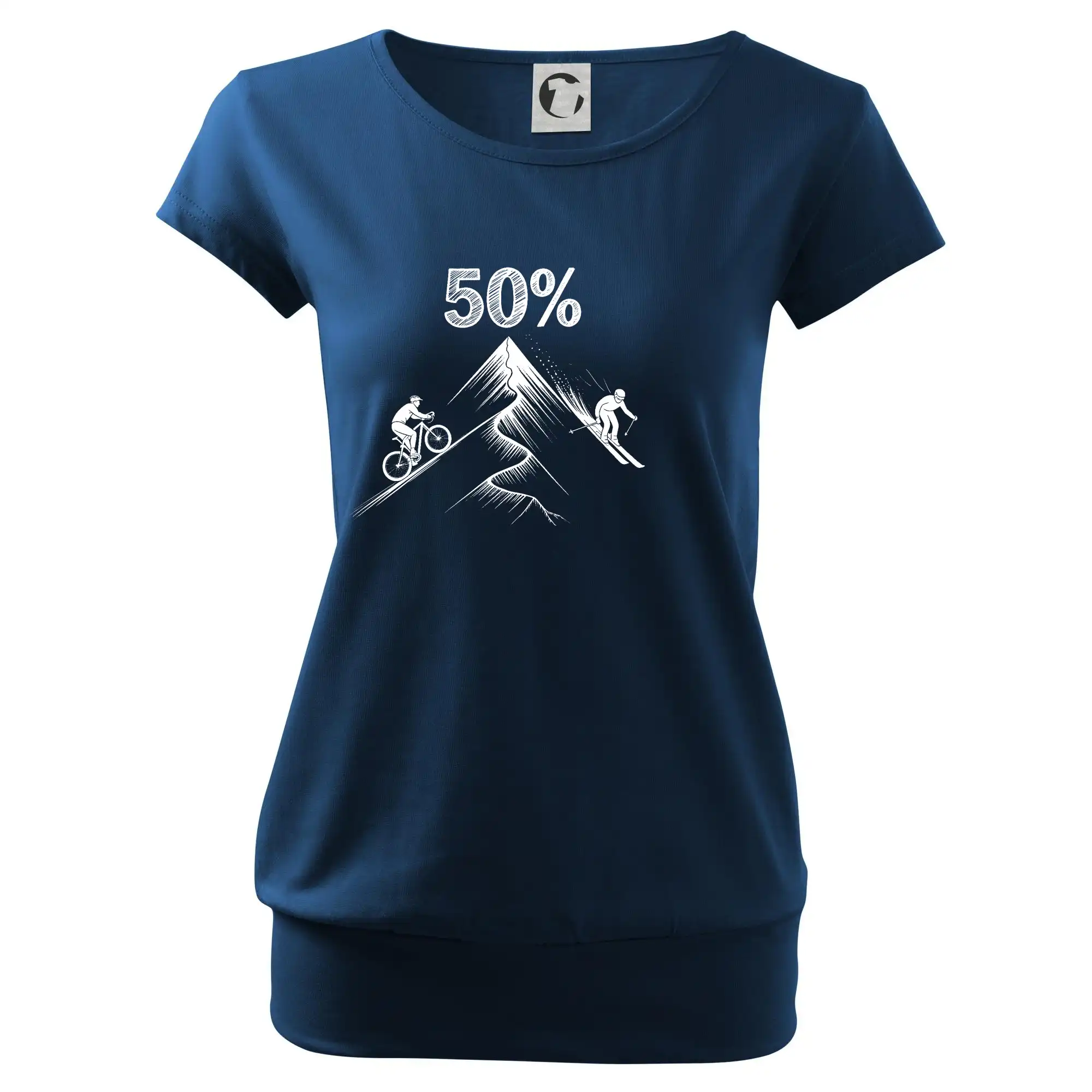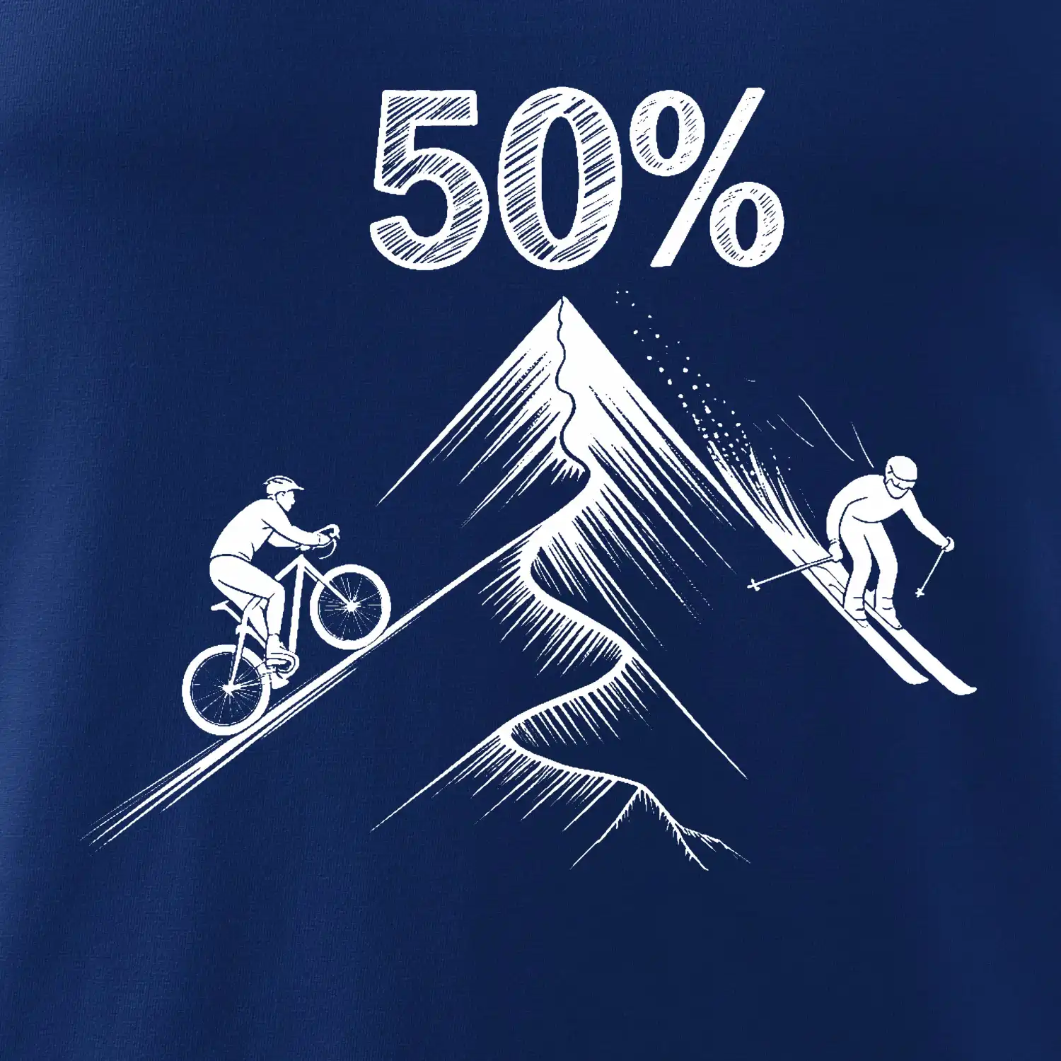 Tento motiv je parádní volba pro každého cyklistu, lyžaře nebo sportovce, který slaví půlstoletí na světě! Středový kruh zdobí výrazná číslice 50, kterou lemují stylizované obrázky kola a lyží – jasná zpráva všem kolem: tahle životní trasa vede přes trail i sjezdovku v plné parádě! Kombinace sportovních symbolů a moderní typografie dodává tričku energii a svěžest, která sluší každému dynamickému oslavenci.