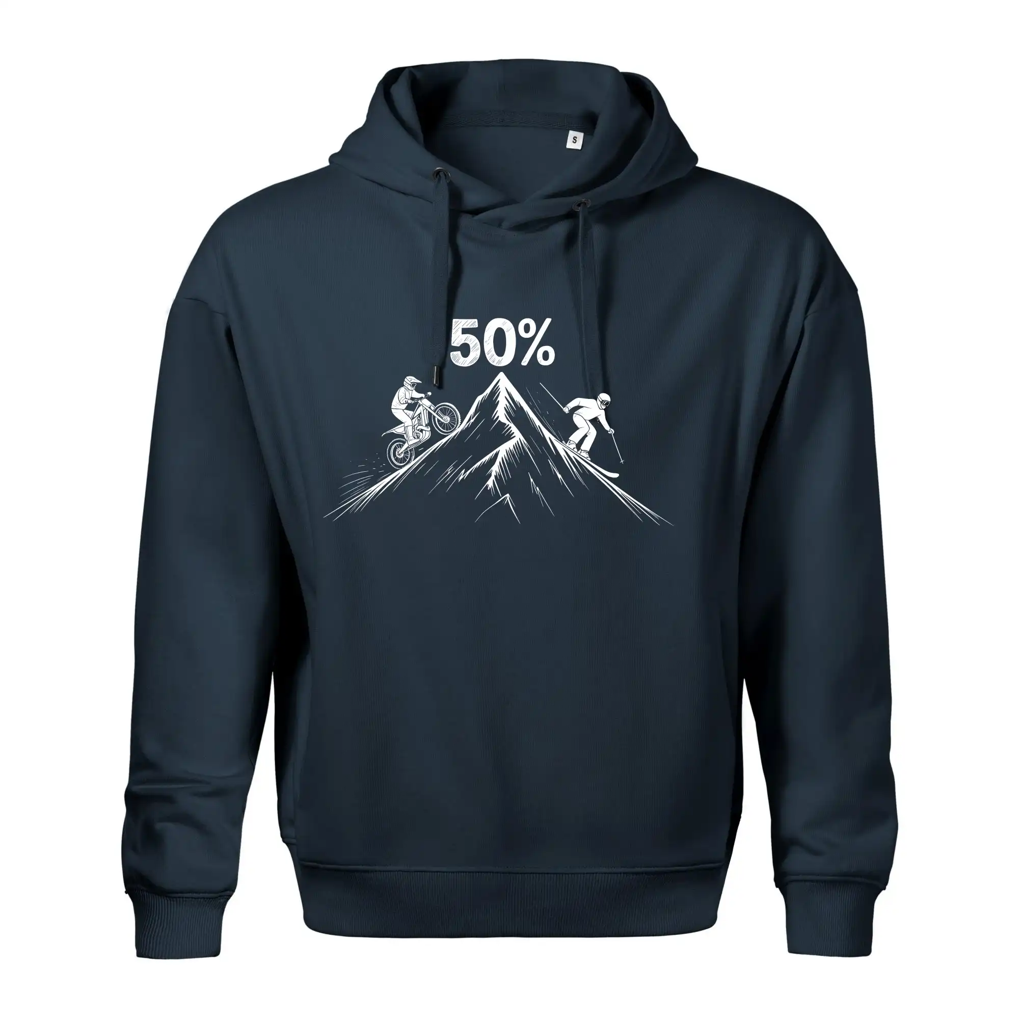Tento motiv je parádní volba pro každého cyklistu, lyžaře nebo sportovce, který slaví půlstoletí na světě! Středový kruh zdobí výrazná číslice 50, kterou lemují stylizované obrázky MOTORKY a lyží – jasná zpráva všem kolem: tahle životní trasa vede přes trail i sjezdovku v plné parádě! Kombinace sportovních symbolů a moderní typografie dodává tričku energii a svěžest, která sluší každému dynamickému oslavenci.