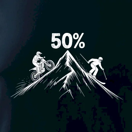 Tento motiv je parádní volba pro každého cyklistu, lyžaře nebo sportovce, který slaví půlstoletí na světě! Středový kruh zdobí výrazná číslice 50, kterou lemují stylizované obrázky MOTORKY a lyží – jasná zpráva všem kolem: tahle životní trasa vede přes trail i sjezdovku v plné parádě! Kombinace sportovních symbolů a moderní typografie dodává tričku energii a svěžest, která sluší každému dynamickému oslavenci.