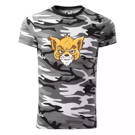Tričko střední gramáže v barvách camouflage. Střih s bočními švy. Lem průkrčníku ze žebrového úpletu s přídavkem 5 % elastanu. Vnitřní část zadního průkrčníku začištěna páskou v barvě camouflage.