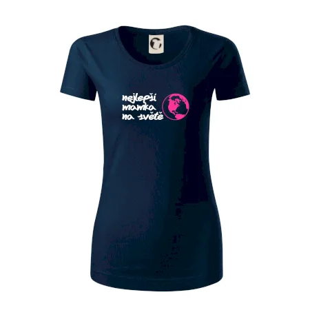 Triko pro mámu s nápisem "Nejlepší mamka na světě". Nevíš jaký mámě pořídit dárek? Kup jí tohle tričko pro mamku. Triko pro mamču je ideální rodinný dárek.