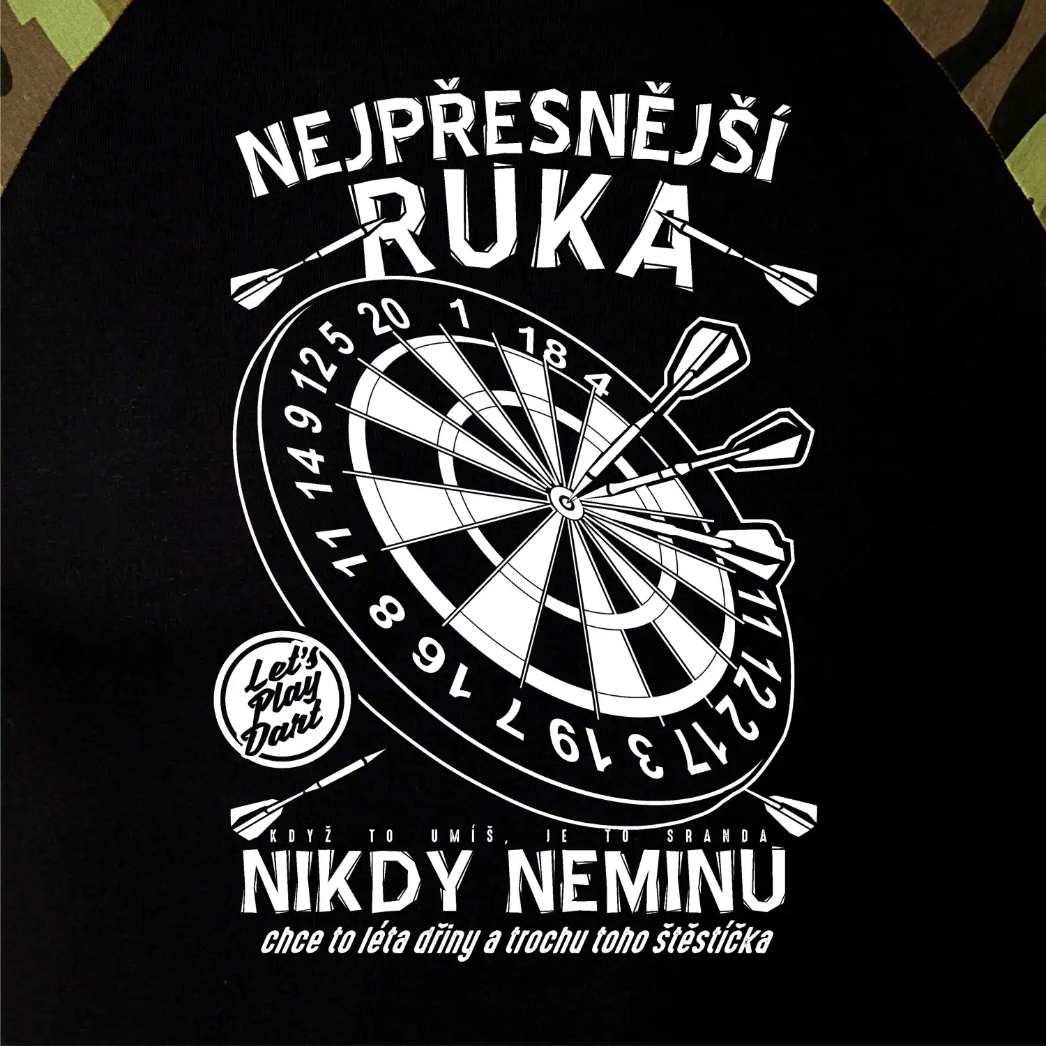 Šipkařské triko na zápas nebo oslavu! Když na šipky, tak nesmíš zapomenout triko pro šipkaře. Šipky vyžadují správné triko, které Vám přinese štěstí! Šťastné triko na šipky. Tričko "Nejpřesnější ruka" jako dárek pro šipkaře nebo pro celý šipkařský tým. Šipky už nejsou zdaleka jen hospodská hra, ale opravdový sport, šipkařský dres je základ správného týmu. Tričko pro sportovce, který hraje šipky a každá jeho šipka trefí terč.