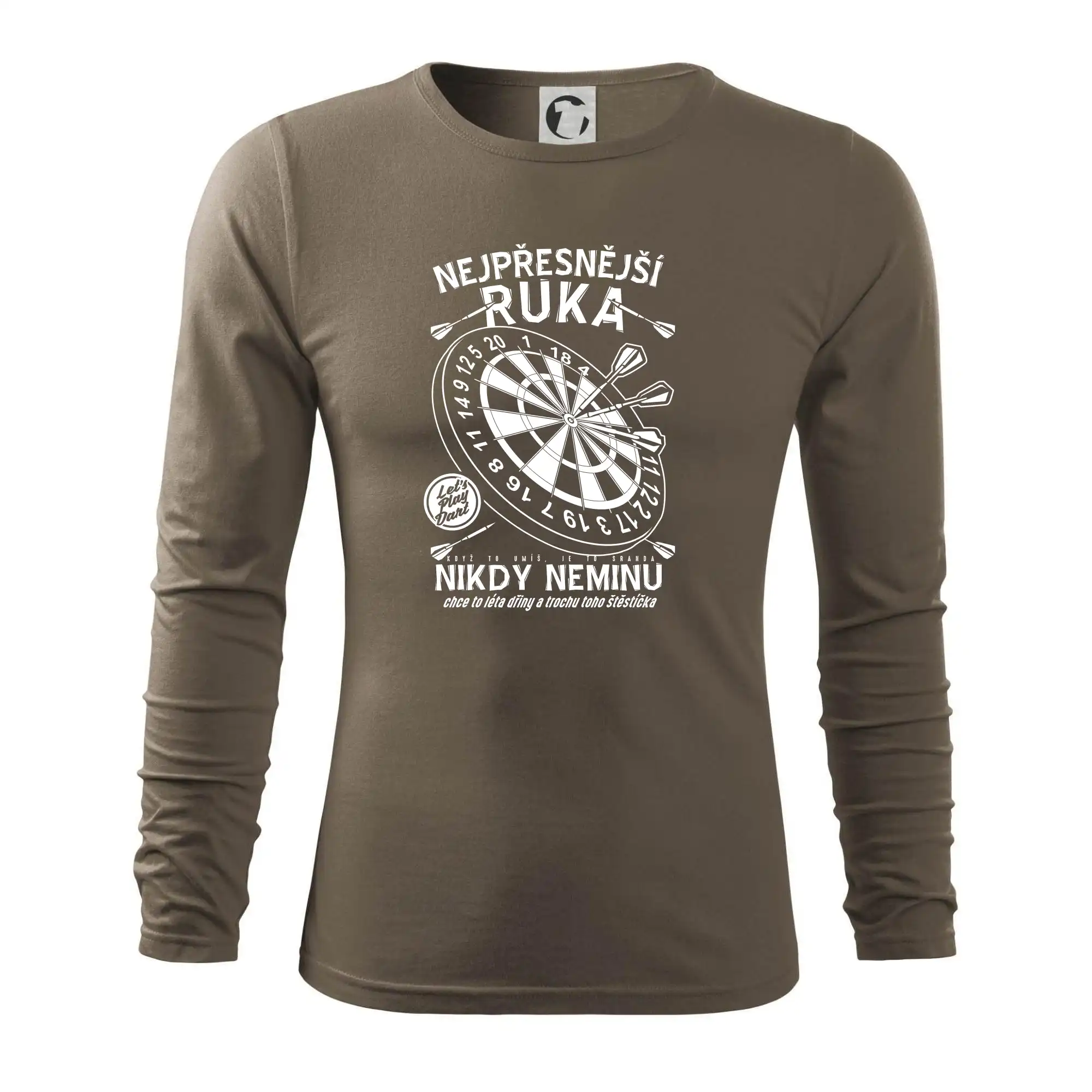 Šipkařské triko na zápas nebo oslavu! Když na šipky, tak nesmíš zapomenout triko pro šipkaře. Šipky vyžadují správné triko, které Vám přinese štěstí! Šťastné triko na šipky. Tričko "Nejpřesnější ruka" jako dárek pro šipkaře nebo pro celý šipkařský tým. Šipky už nejsou zdaleka jen hospodská hra, ale opravdový sport, šipkařský dres je základ správného týmu. Tričko pro sportovce, který hraje šipky a každá jeho šipka trefí terč.