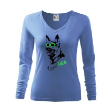 Tolerantnější vypasování dámského střihu, který je vhodný pro všechny typy postavy, ideální délka rukávů a konzervativní výstřih zakončený žebrováním, které skvěle drží tvar.