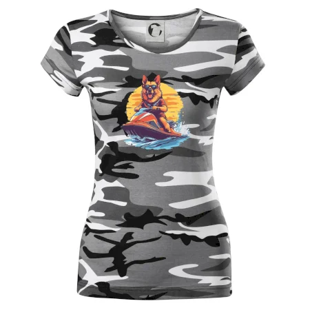 Německý ovčák na vodním skútru
