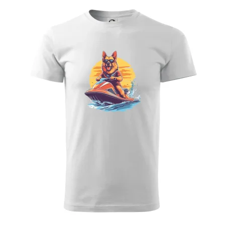 Německý ovčák na vodním skútru