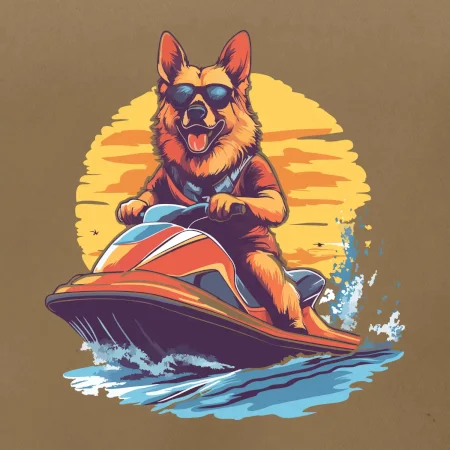 Německý ovčák na vodním skútru