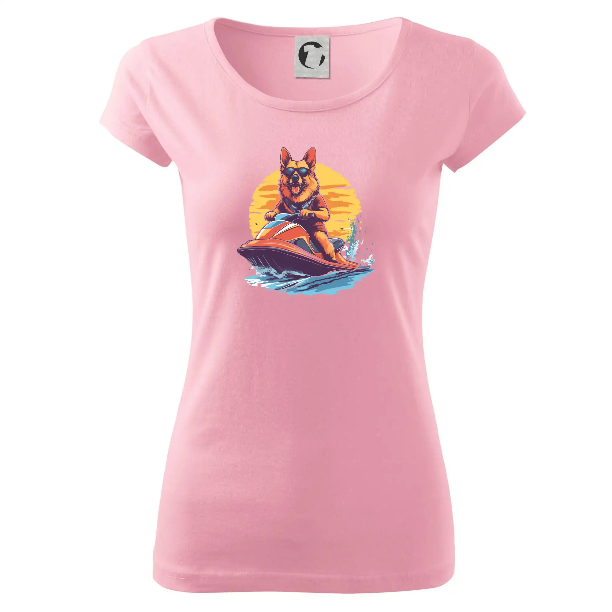 Německý ovčák na vodním skútru