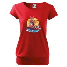 Německý ovčák na vodním skútru