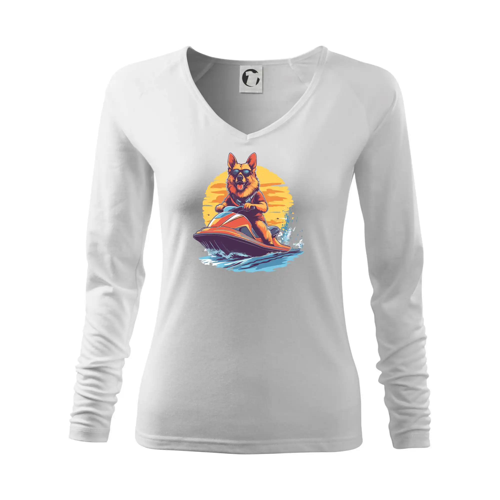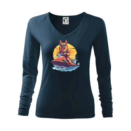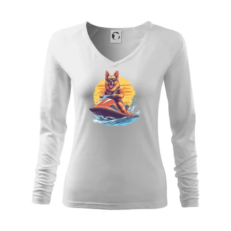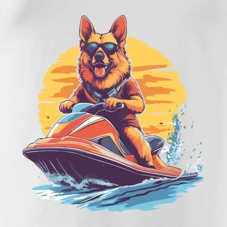 Německý ovčák na vodním skútru