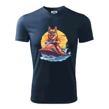 Německý ovčák na vodním skútru