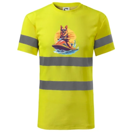 Německý ovčák na vodním skútru