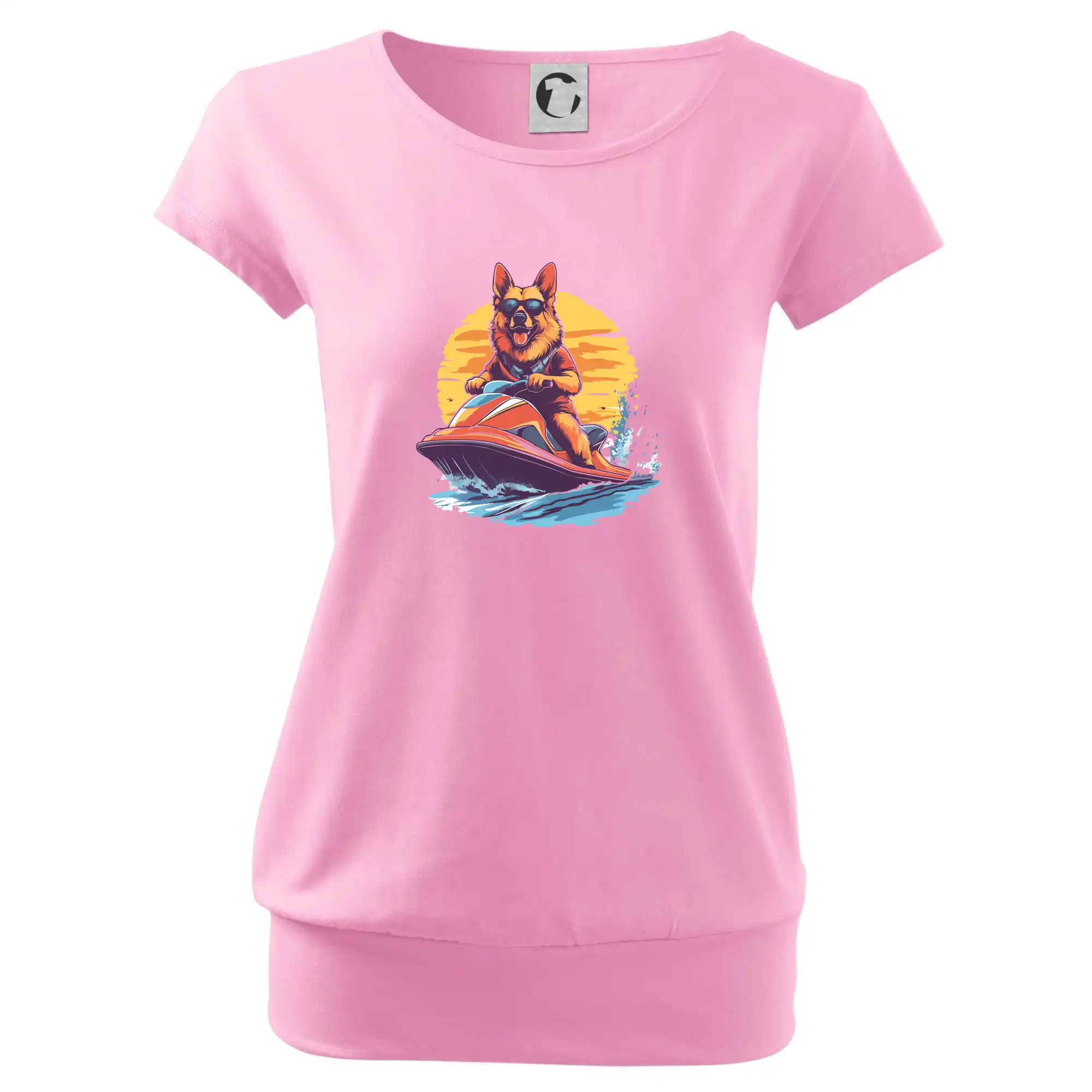 Německý ovčák na vodním skútru