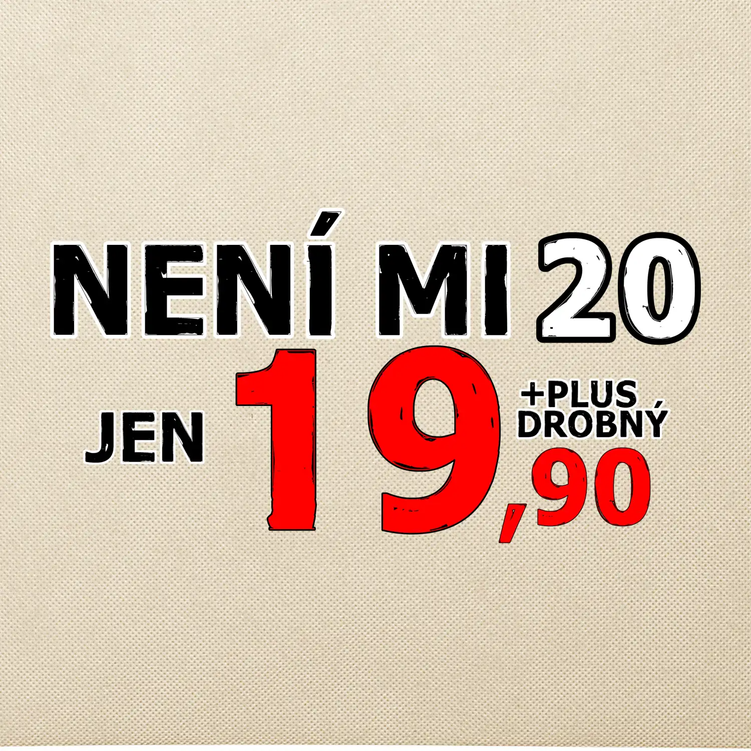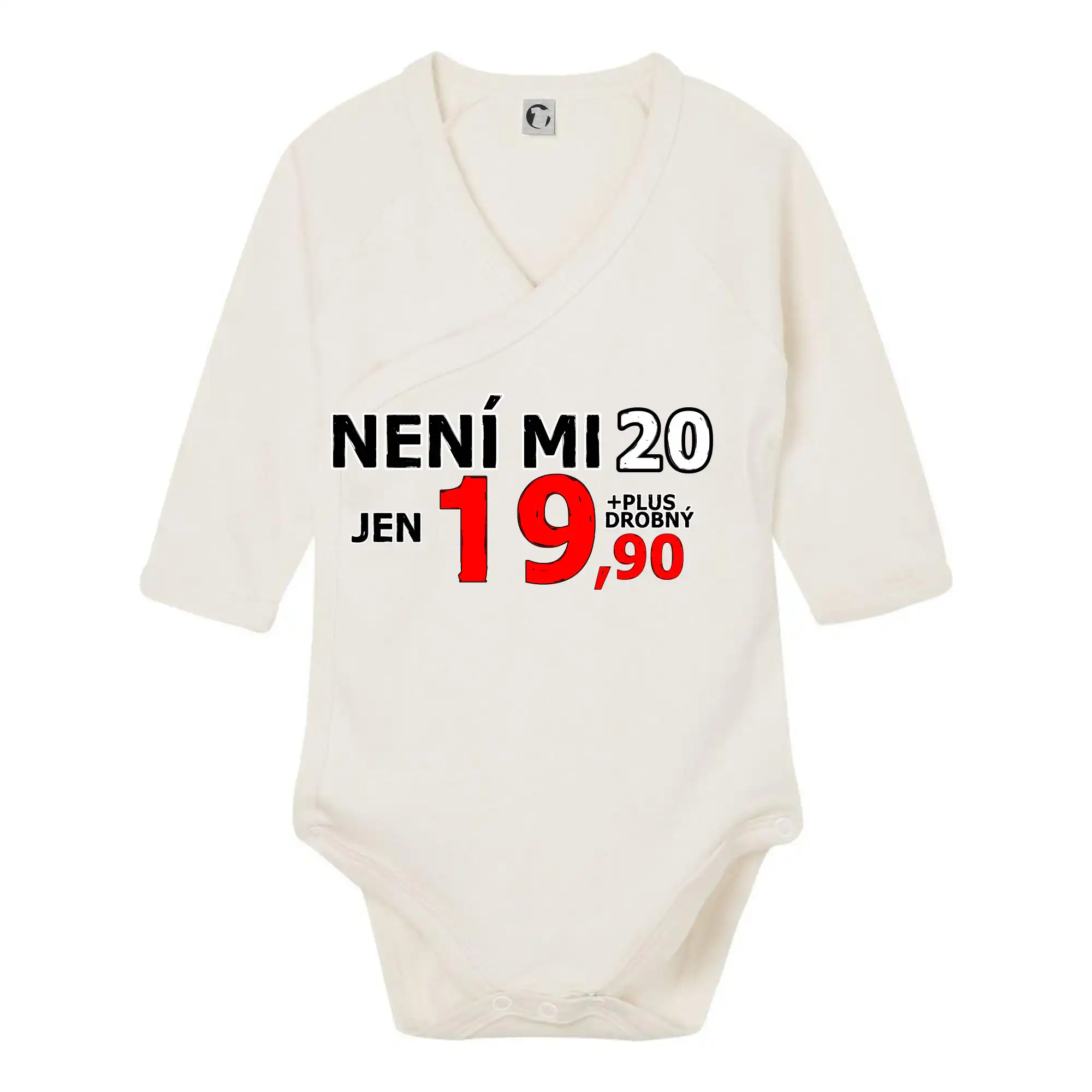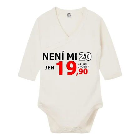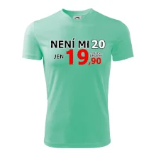 Triko s motivem "Není mi 20, jen 19,90 plus drobný". Narozeninové triko pro oslavence, který oslaví jubileum 20 let, ale připadá si mladší. Dárek ke dvacátinám. Triko ke dvacátým narozeninám.
