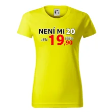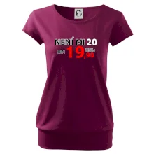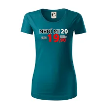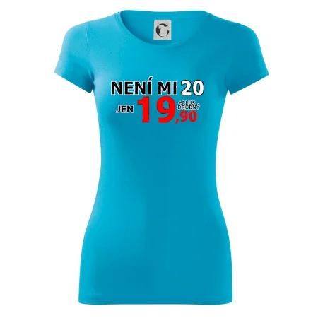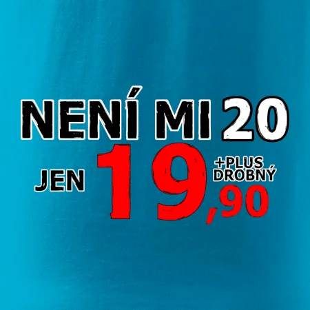 Triko s motivem "Není mi 20, jen 19,90 plus drobný". Narozeninové triko pro oslavence, který oslaví jubileum 20 let, ale připadá si mladší. Dárek ke dvacátinám. Triko ke dvacátým narozeninám.