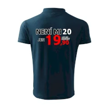 Triko s motivem "Není mi 20, jen 19,90 plus drobný". Narozeninové triko pro oslavence, který oslaví jubileum 20 let, ale připadá si mladší. Dárek ke dvacátinám. Triko ke dvacátým narozeninám.