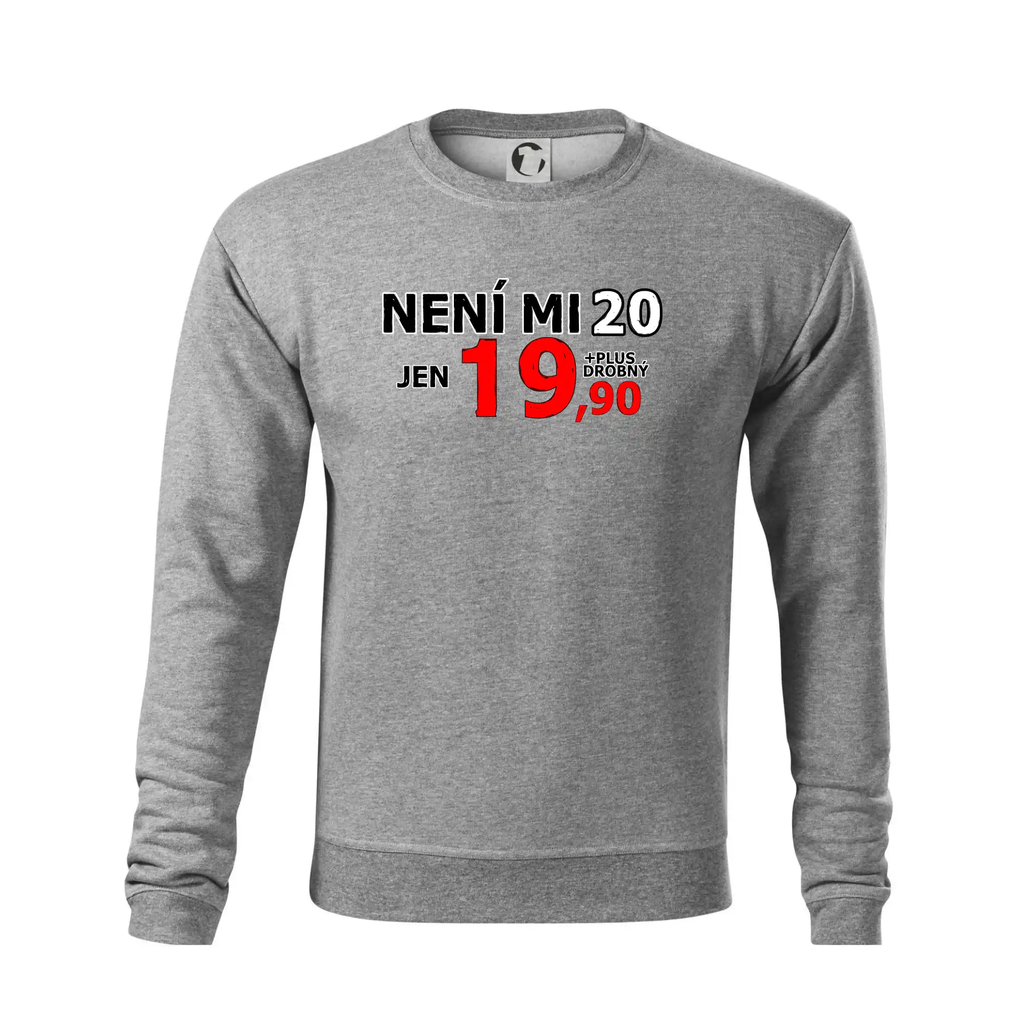 Triko s motivem "Není mi 20, jen 19,90 plus drobný". Narozeninové triko pro oslavence, který oslaví jubileum 20 let, ale připadá si mladší. Dárek ke dvacátinám. Triko ke dvacátým narozeninám.