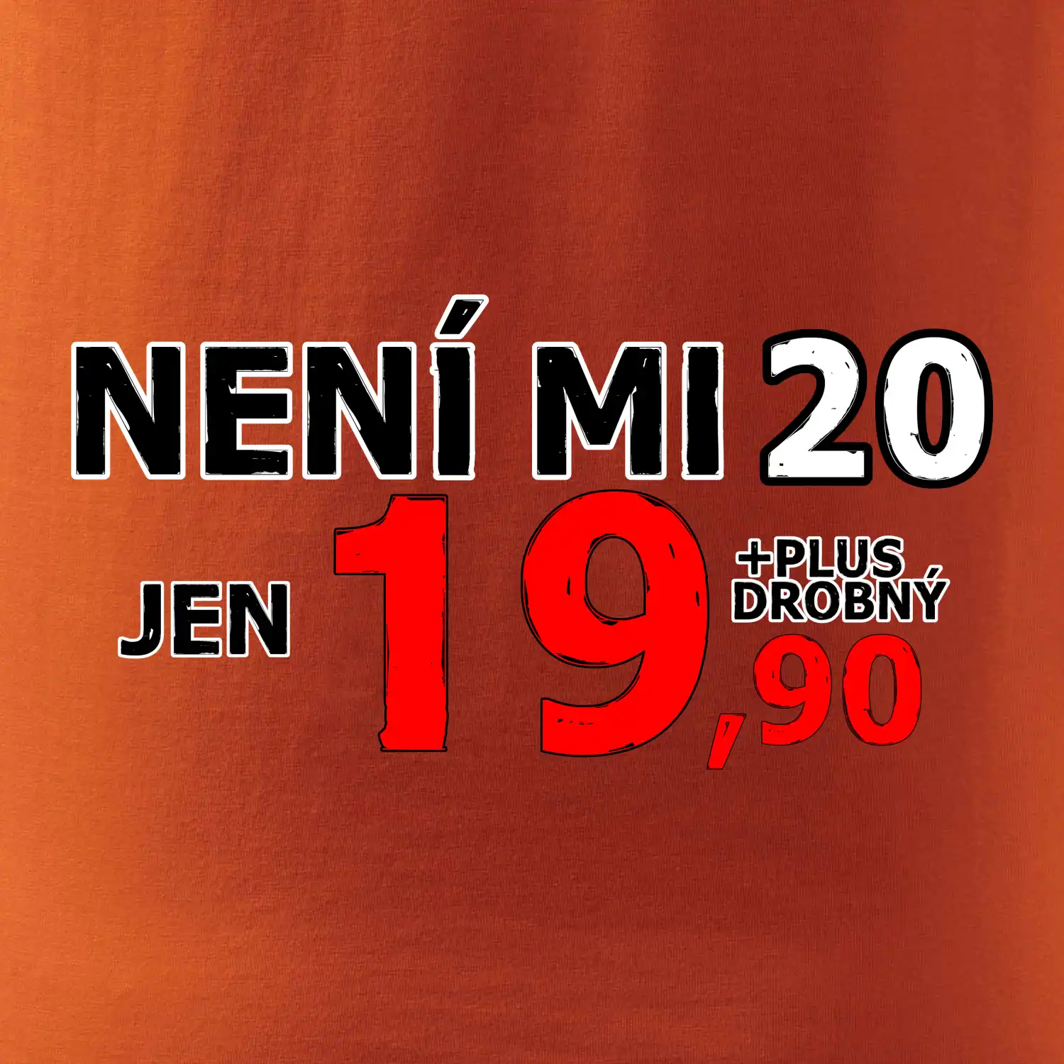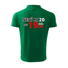 Triko s motivem "Není mi 20, jen 19,90 plus drobný". Narozeninové triko pro oslavence, který oslaví jubileum 20 let, ale připadá si mladší. Dárek ke dvacátinám. Triko ke dvacátým narozeninám.