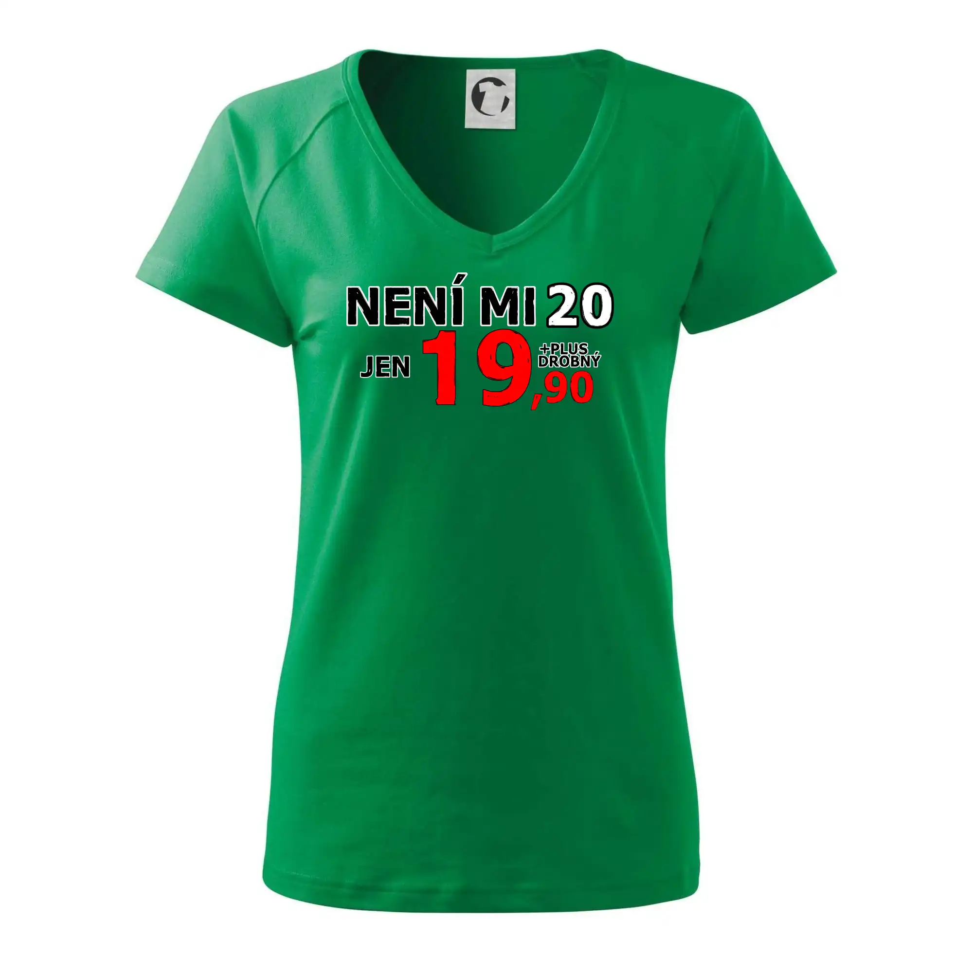 Triko s motivem "Není mi 20, jen 19,90 plus drobný". Narozeninové triko pro oslavence, který oslaví jubileum 20 let, ale připadá si mladší. Dárek ke dvacátinám. Triko ke dvacátým narozeninám.