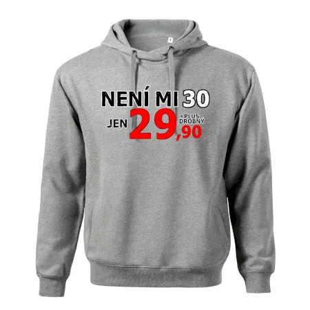 Triko s motivem "Není mi 30, jen 29,90 plus drobný". Narozeninové triko pro oslavence, který oslaví jubileum 30 let, ale připadá si mladší. Dárek ke třicátinám. Triko ke třicátým narozeninám.