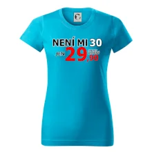 Triko s motivem "Není mi 30, jen 29,90 plus drobný". Narozeninové triko pro oslavence, který oslaví jubileum 30 let, ale připadá si mladší. Dárek ke třicátinám. Triko ke třicátým narozeninám.