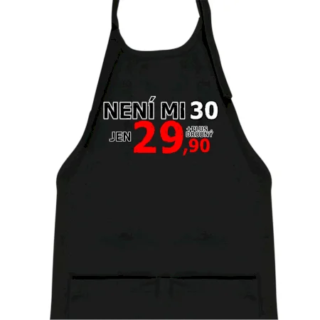 Triko s motivem "Není mi 30, jen 29,90 plus drobný". Narozeninové triko pro oslavence, který oslaví jubileum 30 let, ale připadá si mladší. Dárek ke třicátinám. Triko ke třicátým narozeninám.