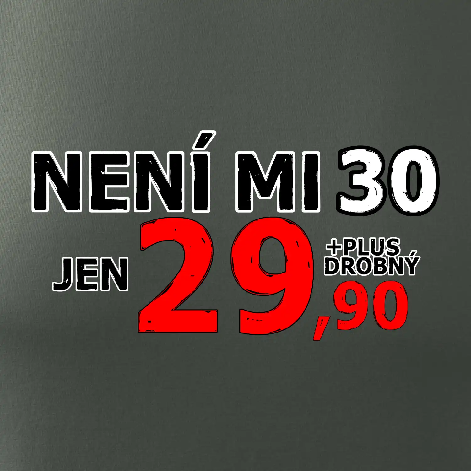 Triko s motivem "Není mi 30, jen 29,90 plus drobný". Narozeninové triko pro oslavence, který oslaví jubileum 30 let, ale připadá si mladší. Dárek ke třicátinám. Triko ke třicátým narozeninám.