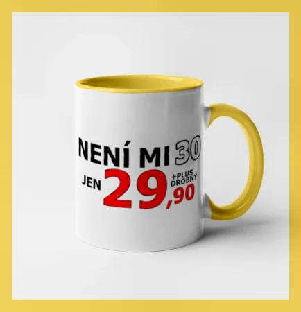 Triko s motivem "Není mi 30, jen 29,90 plus drobný". Narozeninové triko pro oslavence, který oslaví jubileum 30 let, ale připadá si mladší. Dárek ke třicátinám. Triko ke třicátým narozeninám.