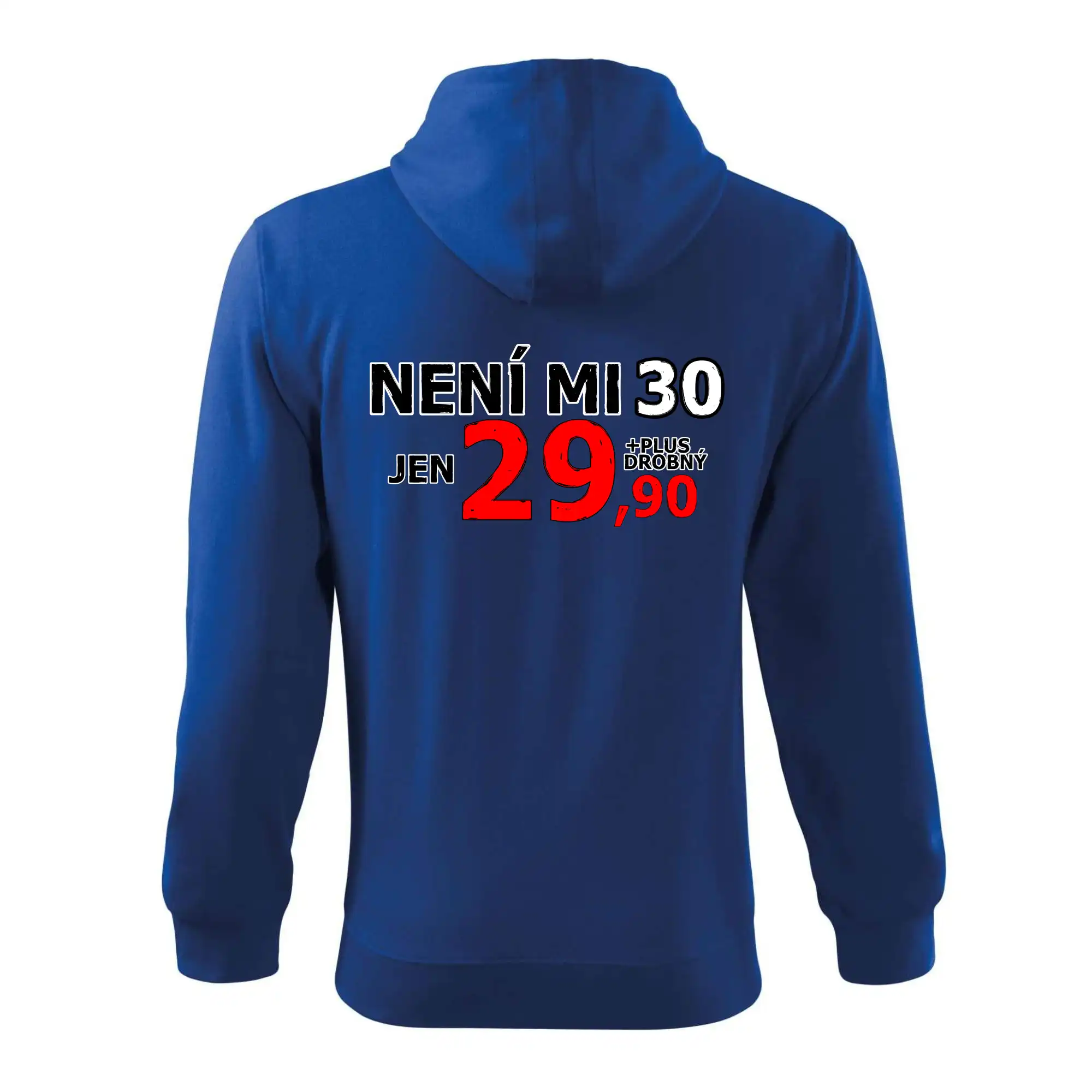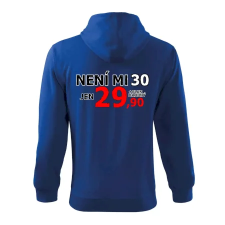 Triko s motivem "Není mi 30, jen 29,90 plus drobný". Narozeninové triko pro oslavence, který oslaví jubileum 30 let, ale připadá si mladší. Dárek ke třicátinám. Triko ke třicátým narozeninám.