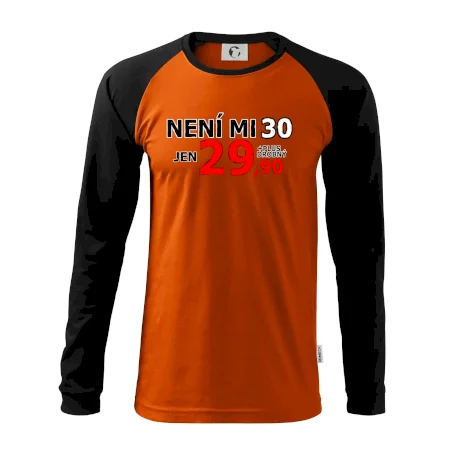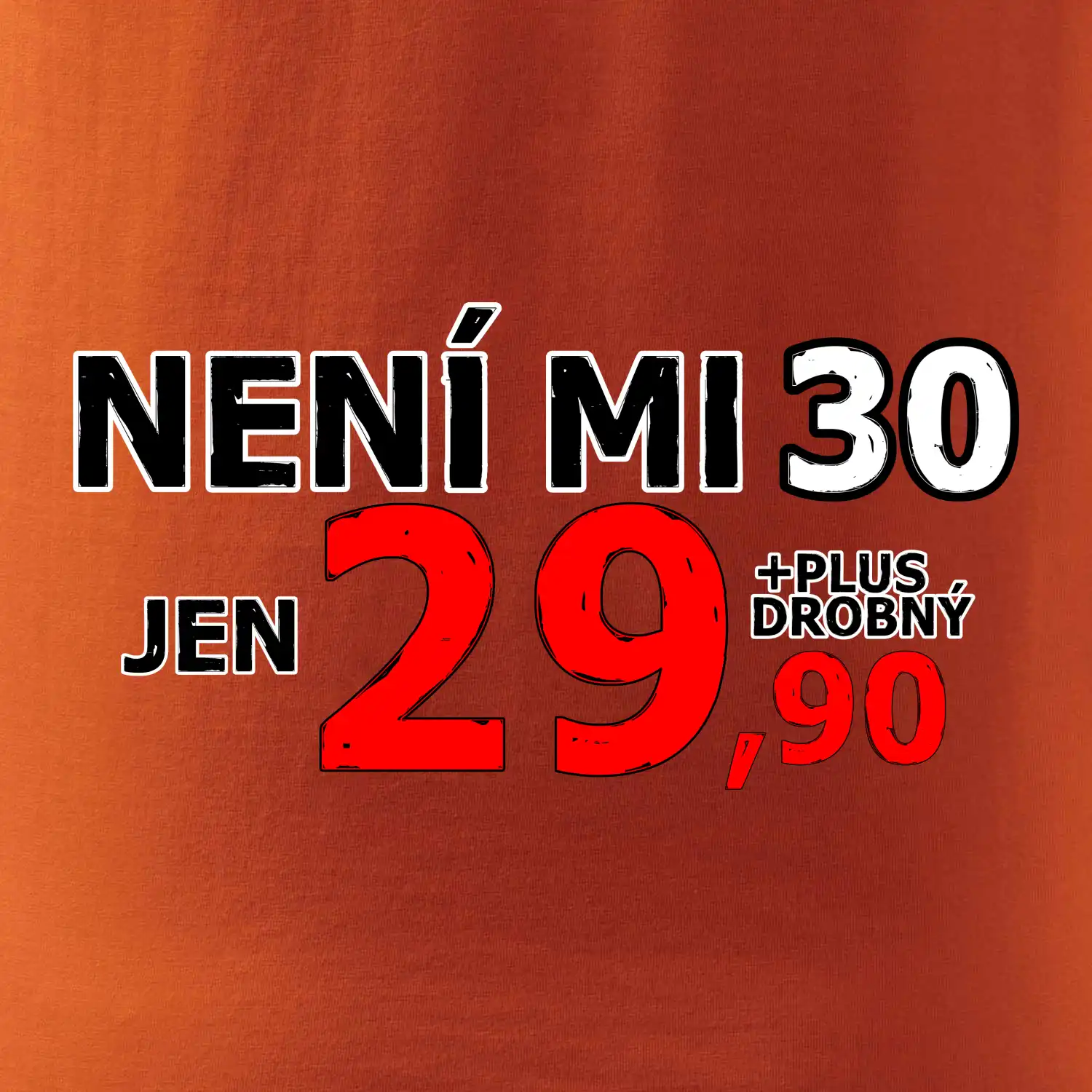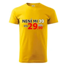 Triko s motivem "Není mi 30, jen 29,90 plus drobný". Narozeninové triko pro oslavence, který oslaví jubileum 30 let, ale připadá si mladší. Dárek ke třicátinám. Triko ke třicátým narozeninám.