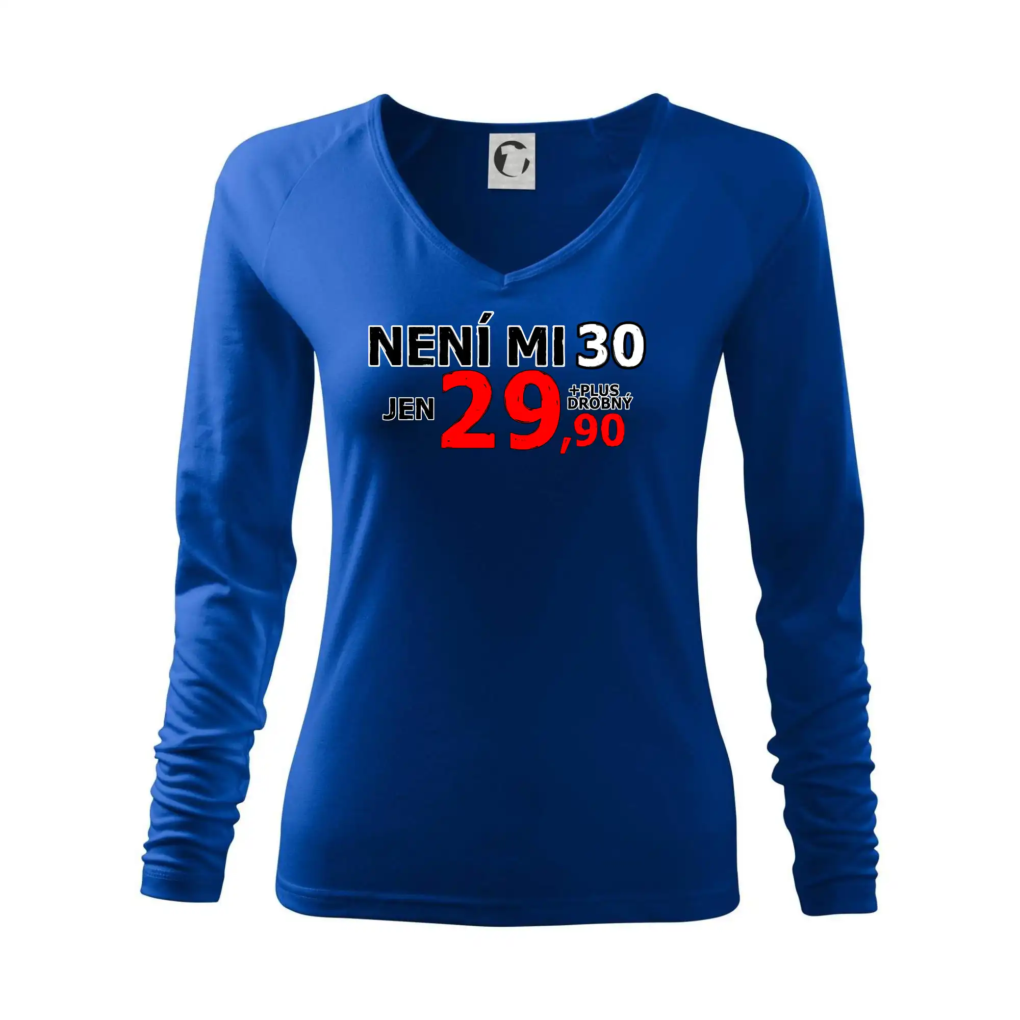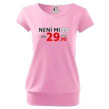 Triko s motivem "Není mi 30, jen 29,90 plus drobný". Narozeninové triko pro oslavence, který oslaví jubileum 30 let, ale připadá si mladší. Dárek ke třicátinám. Triko ke třicátým narozeninám.