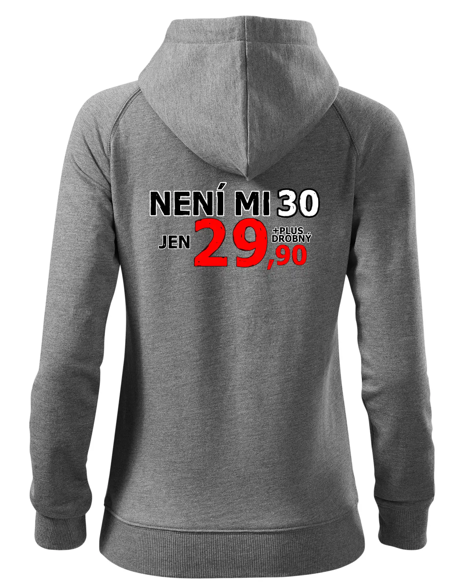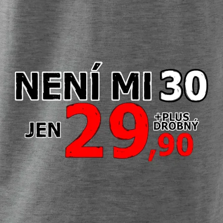 Triko s motivem "Není mi 30, jen 29,90 plus drobný". Narozeninové triko pro oslavence, který oslaví jubileum 30 let, ale připadá si mladší. Dárek ke třicátinám. Triko ke třicátým narozeninám.