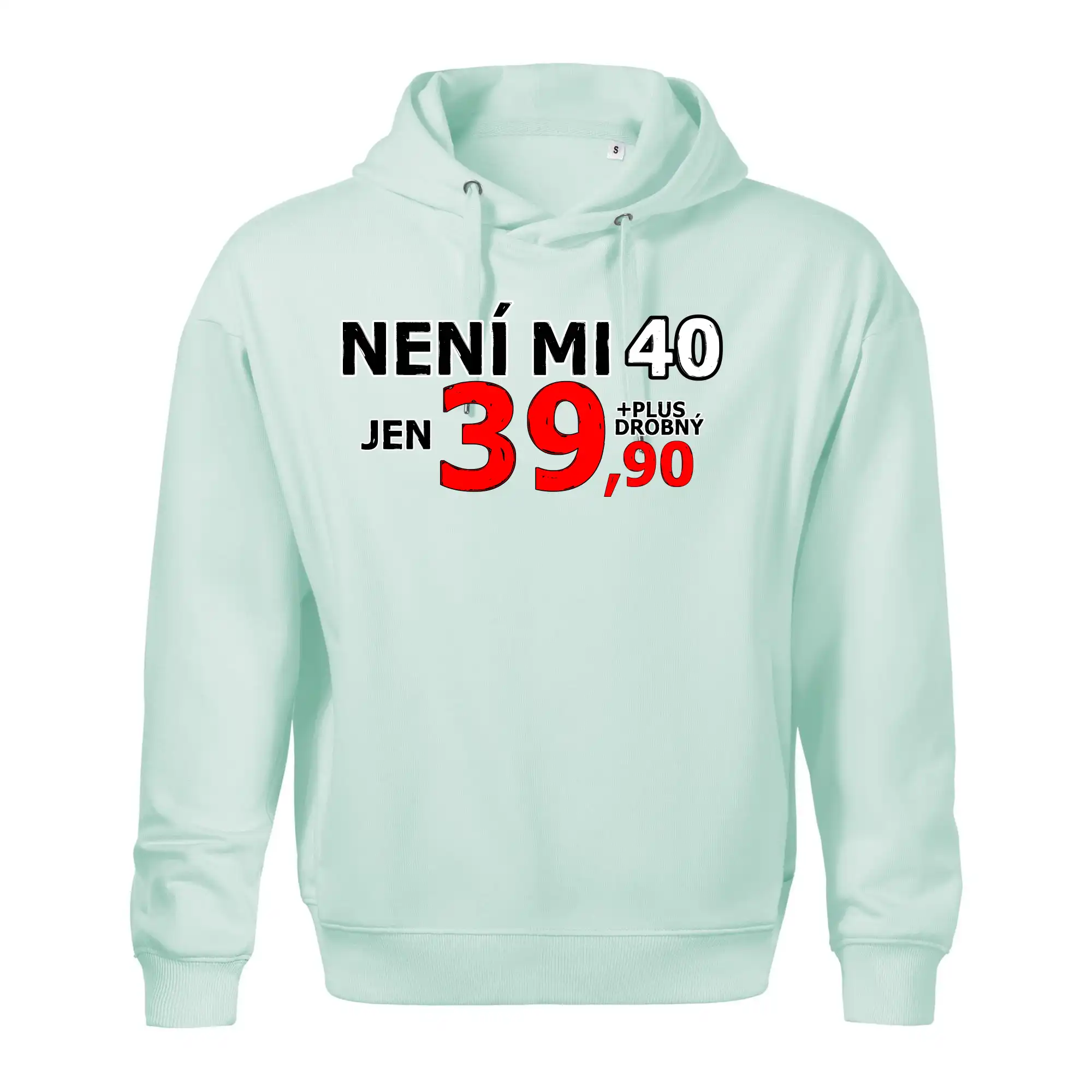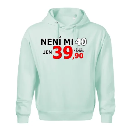 Triko s motivem "Není mi 40, jen 39,90 plus drobný". Narozeninové triko pro oslavence, který oslaví jubileum 40 let, ale připadá si mladší. Dárek ke čtyřicátinám. Triko ke čtyřicátým narozeninám.