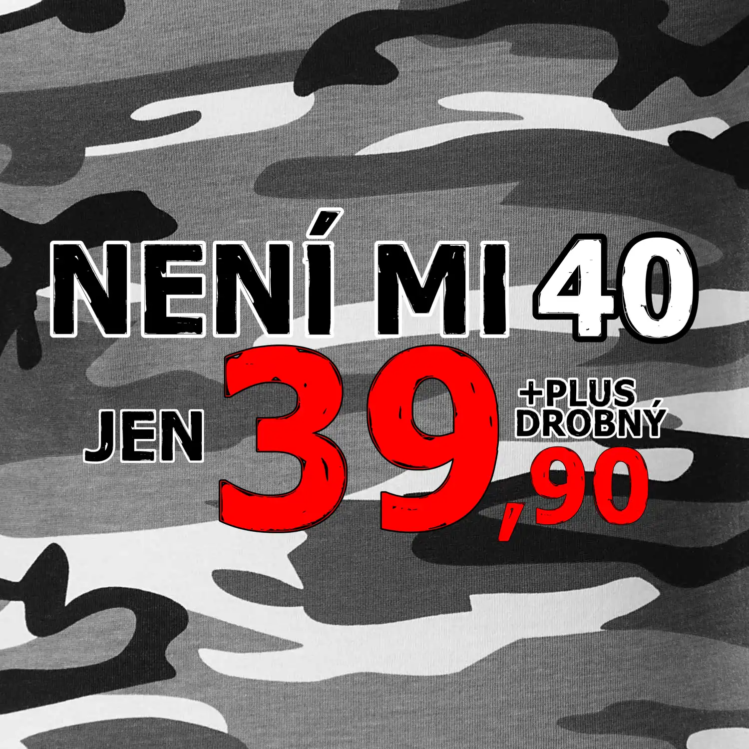 Triko s motivem "Není mi 40, jen 39,90 plus drobný". Narozeninové triko pro oslavence, který oslaví jubileum 40 let, ale připadá si mladší. Dárek ke čtyřicátinám. Triko ke čtyřicátým narozeninám.
