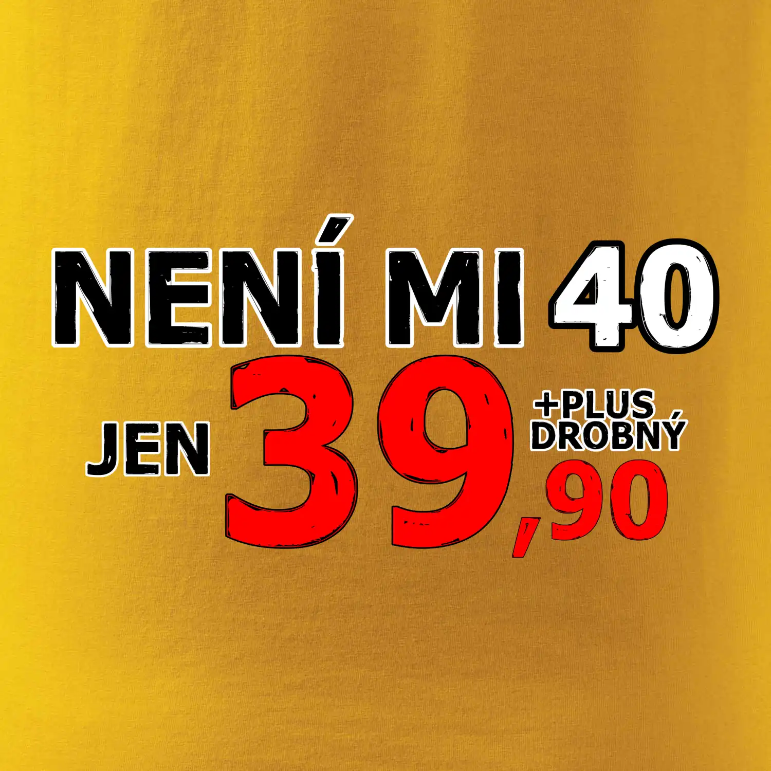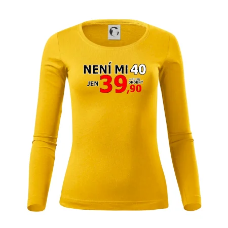 Triko s motivem "Není mi 40, jen 39,90 plus drobný". Narozeninové triko pro oslavence, který oslaví jubileum 40 let, ale připadá si mladší. Dárek ke čtyřicátinám. Triko ke čtyřicátým narozeninám.