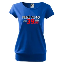 Triko s motivem "Není mi 40, jen 39,90 plus drobný". Narozeninové triko pro oslavence, který oslaví jubileum 40 let, ale připadá si mladší. Dárek ke čtyřicátinám. Triko ke čtyřicátým narozeninám.