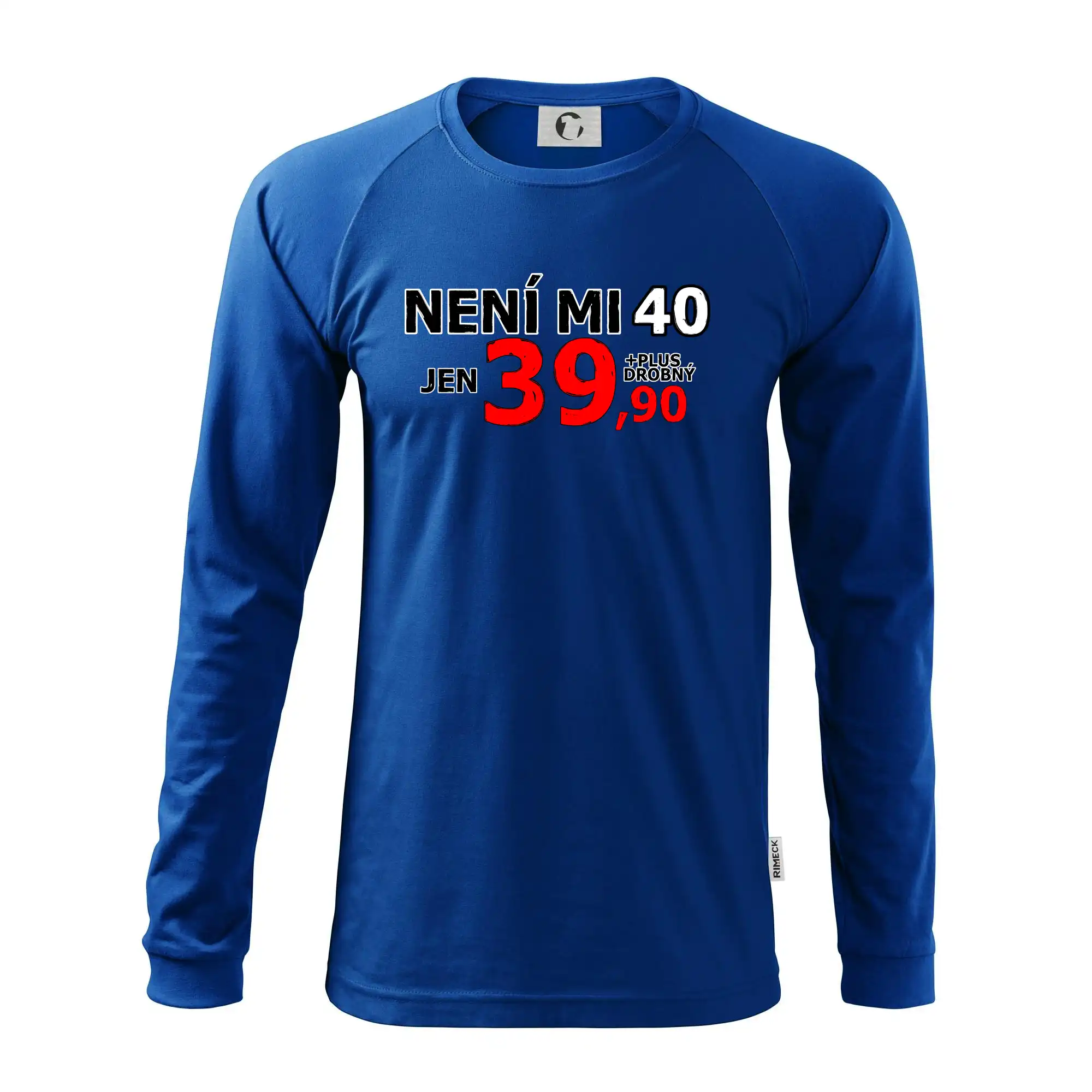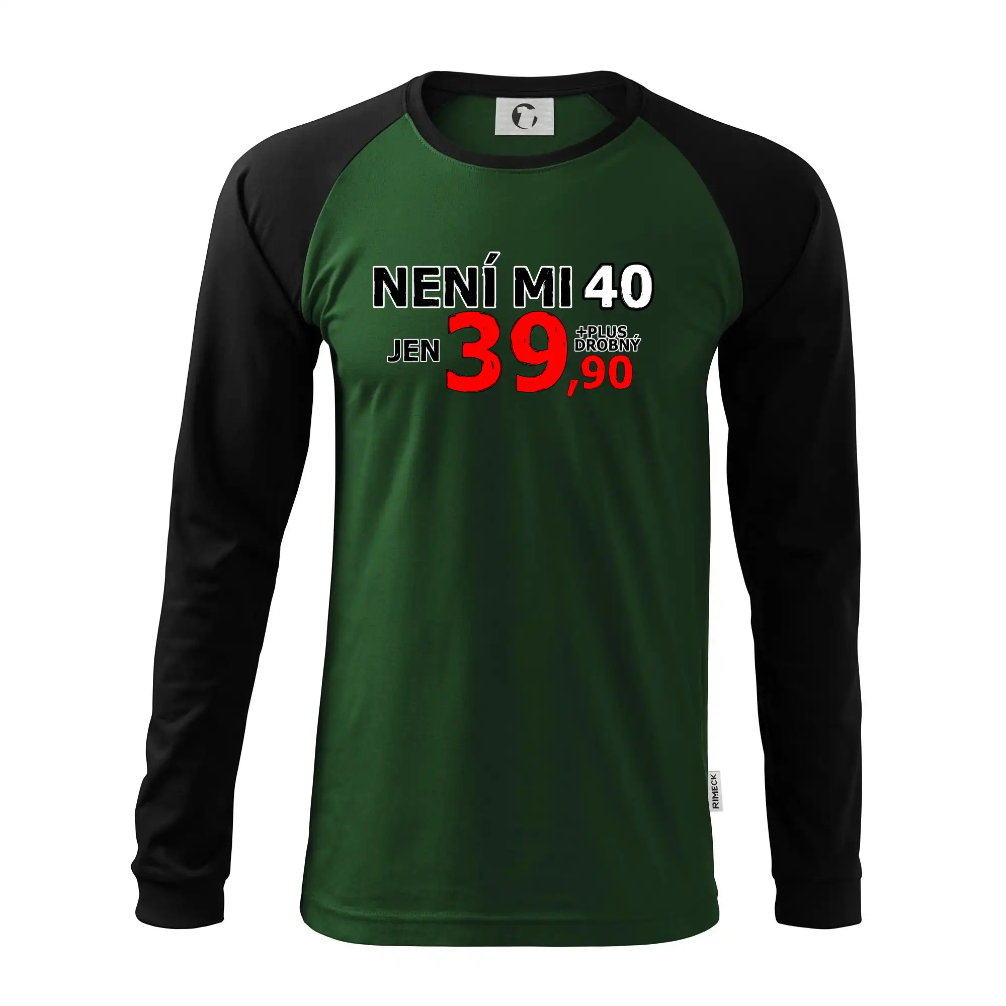 Triko s motivem "Není mi 40, jen 39,90 plus drobný". Narozeninové triko pro oslavence, který oslaví jubileum 40 let, ale připadá si mladší. Dárek ke čtyřicátinám. Triko ke čtyřicátým narozeninám.