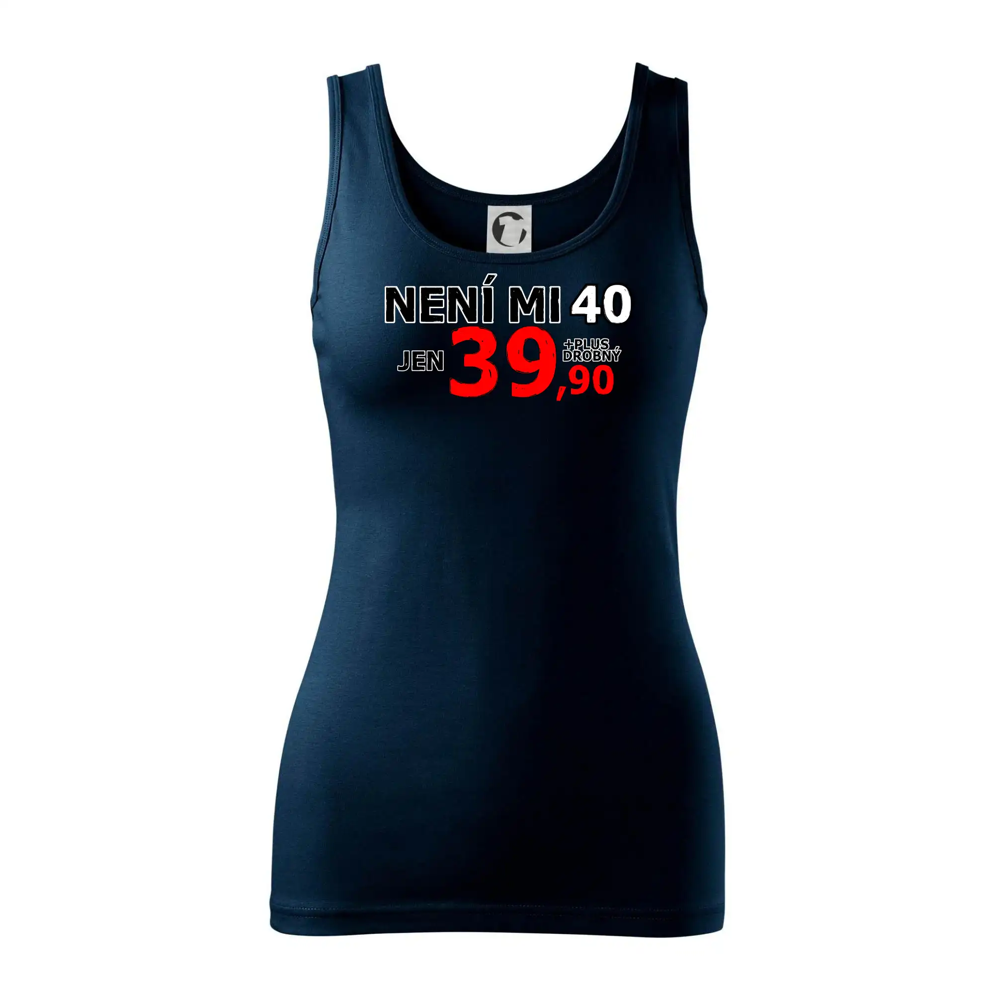 Triko s motivem "Není mi 40, jen 39,90 plus drobný". Narozeninové triko pro oslavence, který oslaví jubileum 40 let, ale připadá si mladší. Dárek ke čtyřicátinám. Triko ke čtyřicátým narozeninám.