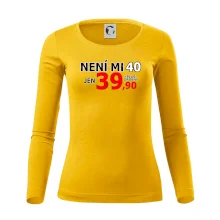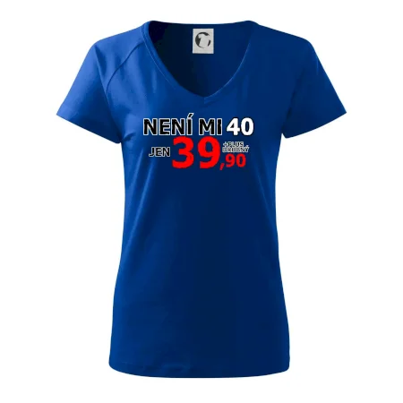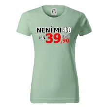 Triko s motivem "Není mi 40, jen 39,90 plus drobný". Narozeninové triko pro oslavence, který oslaví jubileum 40 let, ale připadá si mladší. Dárek ke čtyřicátinám. Triko ke čtyřicátým narozeninám.
