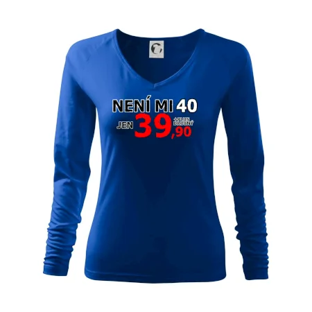 Triko s motivem "Není mi 40, jen 39,90 plus drobný". Narozeninové triko pro oslavence, který oslaví jubileum 40 let, ale připadá si mladší. Dárek ke čtyřicátinám. Triko ke čtyřicátým narozeninám.