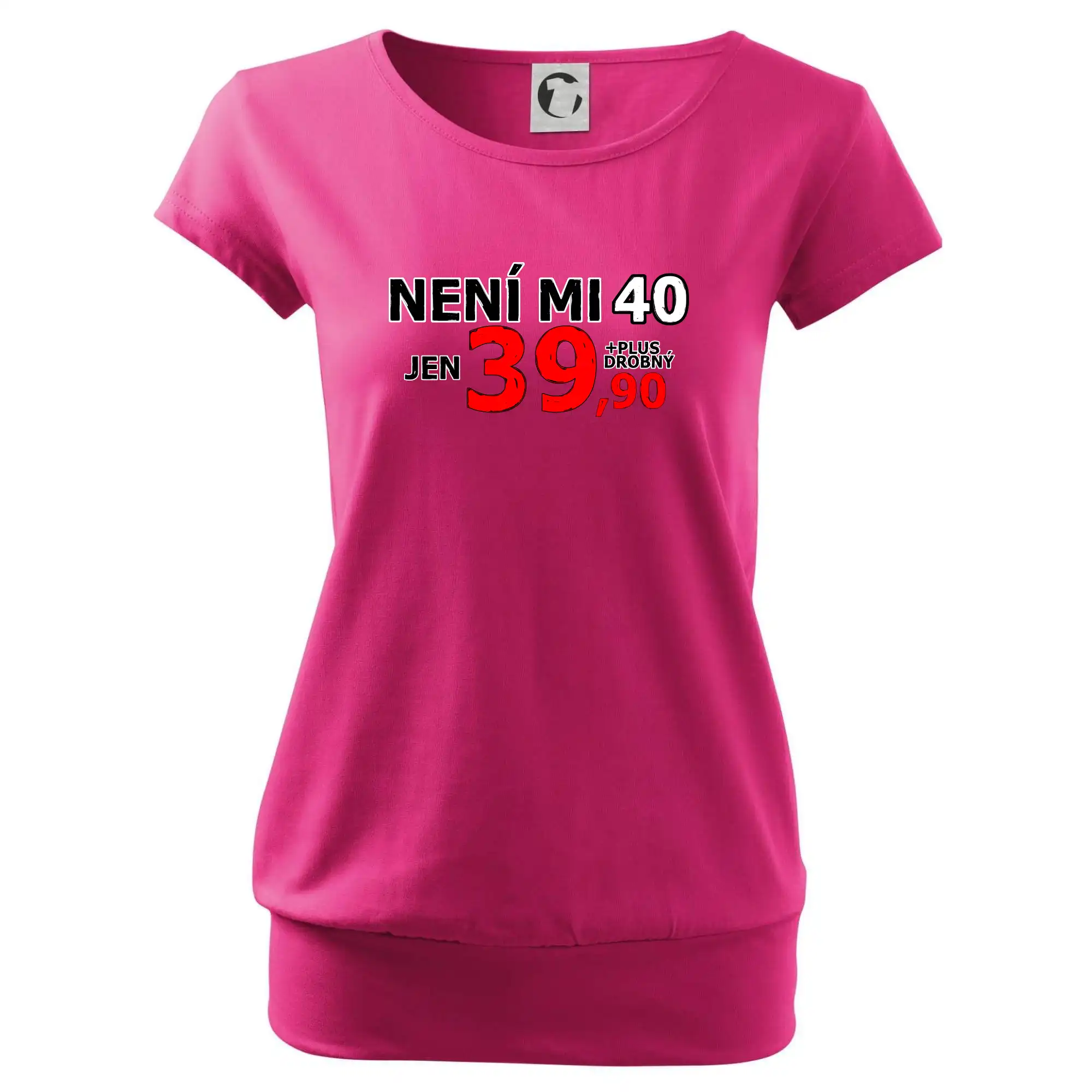 Triko s motivem "Není mi 40, jen 39,90 plus drobný". Narozeninové triko pro oslavence, který oslaví jubileum 40 let, ale připadá si mladší. Dárek ke čtyřicátinám. Triko ke čtyřicátým narozeninám.