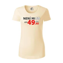 Triko s motivem "Není mi 50, jen 49,90 plus drobný". Narozeninové triko pro oslavence, který oslaví jubileum 50 let, ale připadá si mladší. Dárek k padesátinám. Triko k padesátým narozeninám.