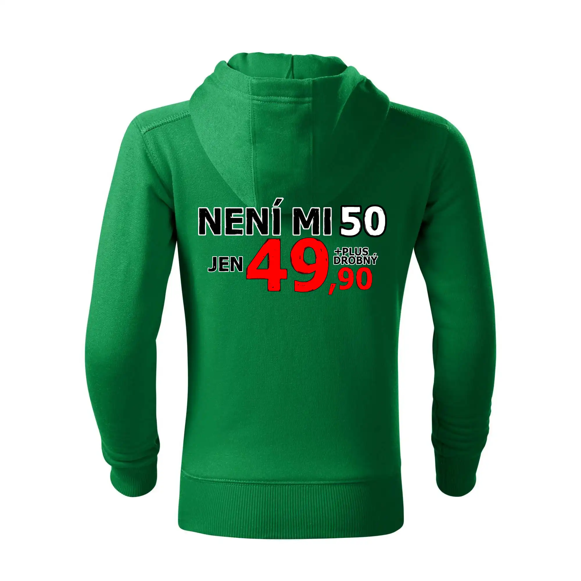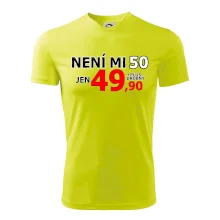 Triko s motivem "Není mi 50, jen 49,90 plus drobný". Narozeninové triko pro oslavence, který oslaví jubileum 50 let, ale připadá si mladší. Dárek k padesátinám. Triko k padesátým narozeninám.