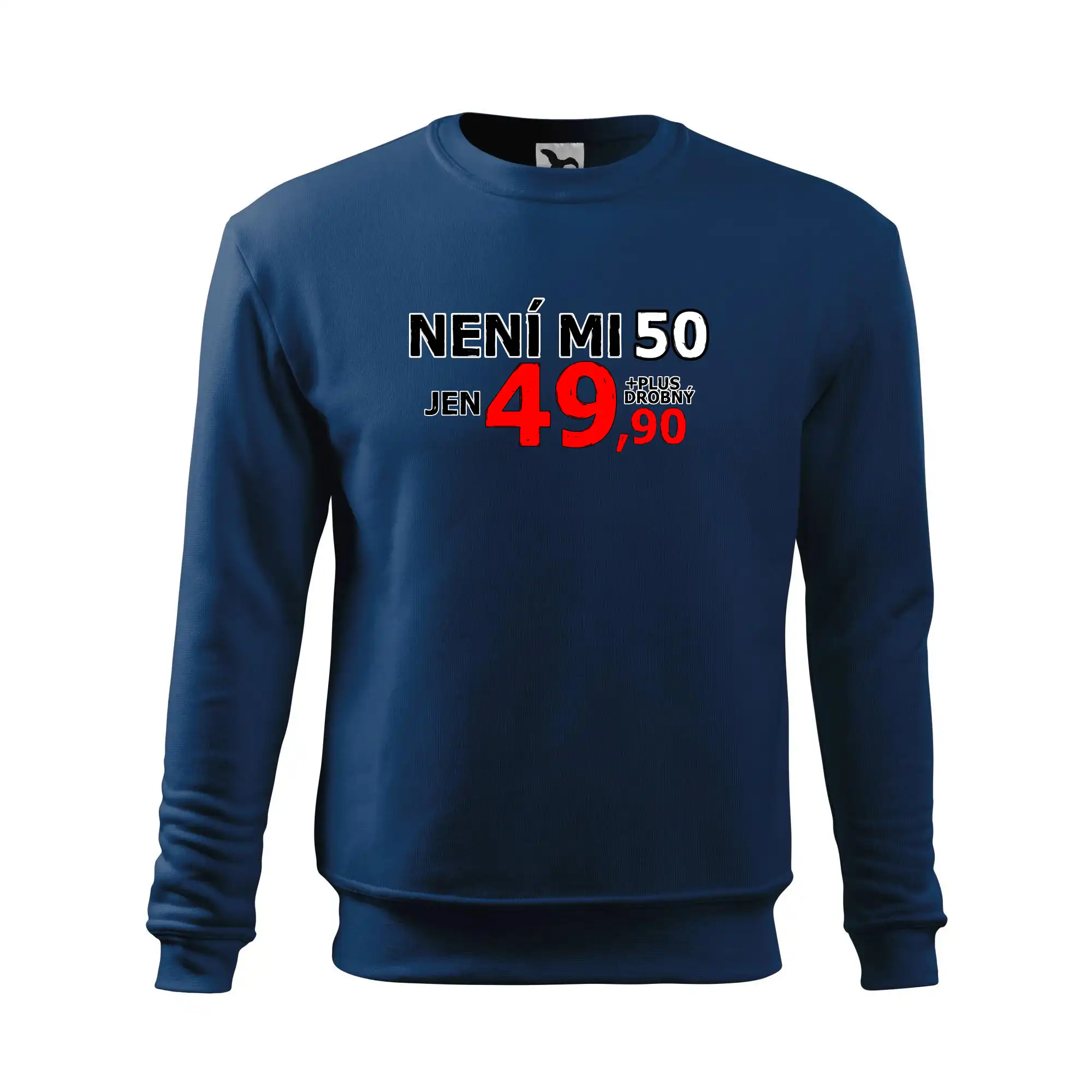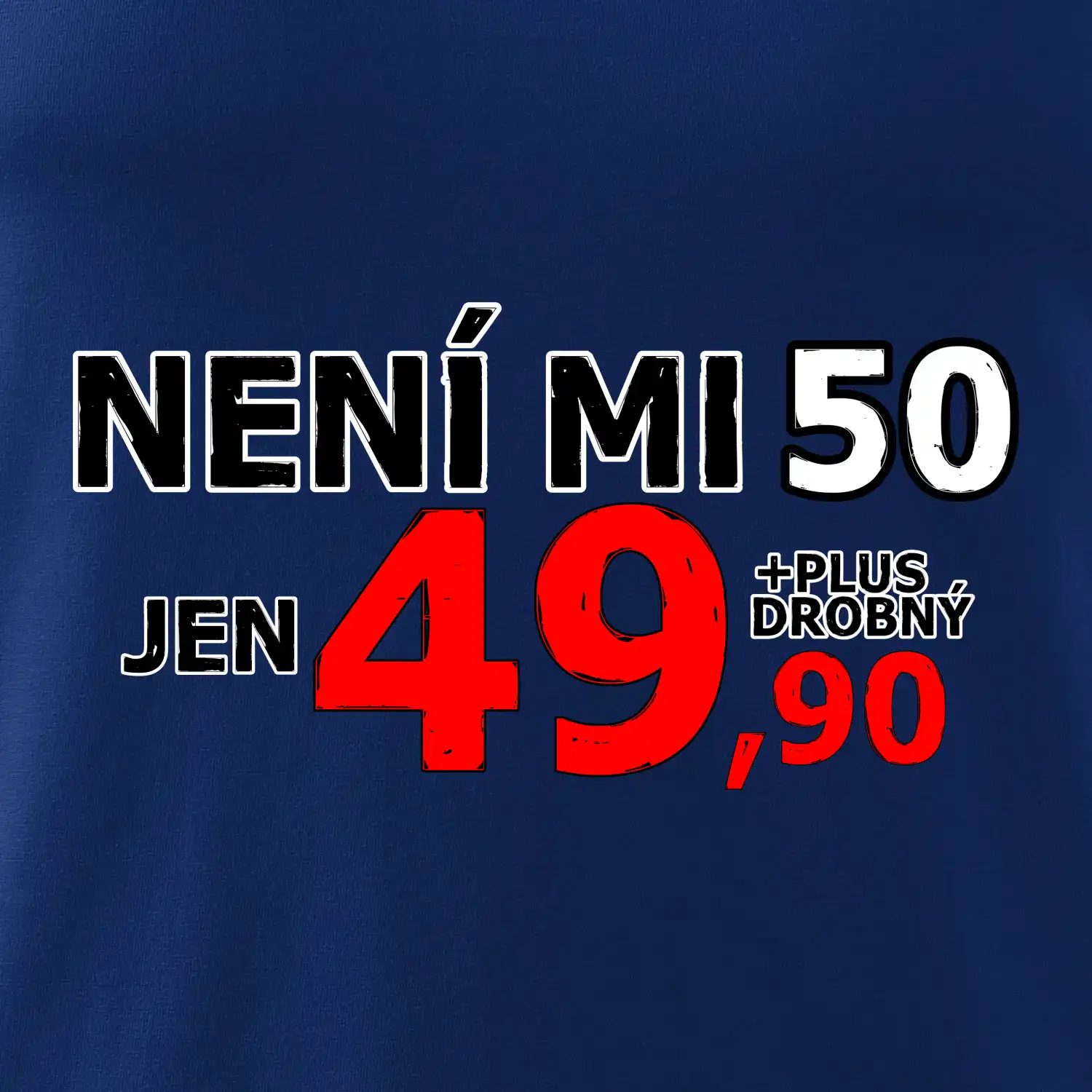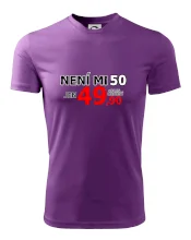 Triko s motivem "Není mi 50, jen 49,90 plus drobný". Narozeninové triko pro oslavence, který oslaví jubileum 50 let, ale připadá si mladší. Dárek k padesátinám. Triko k padesátým narozeninám.