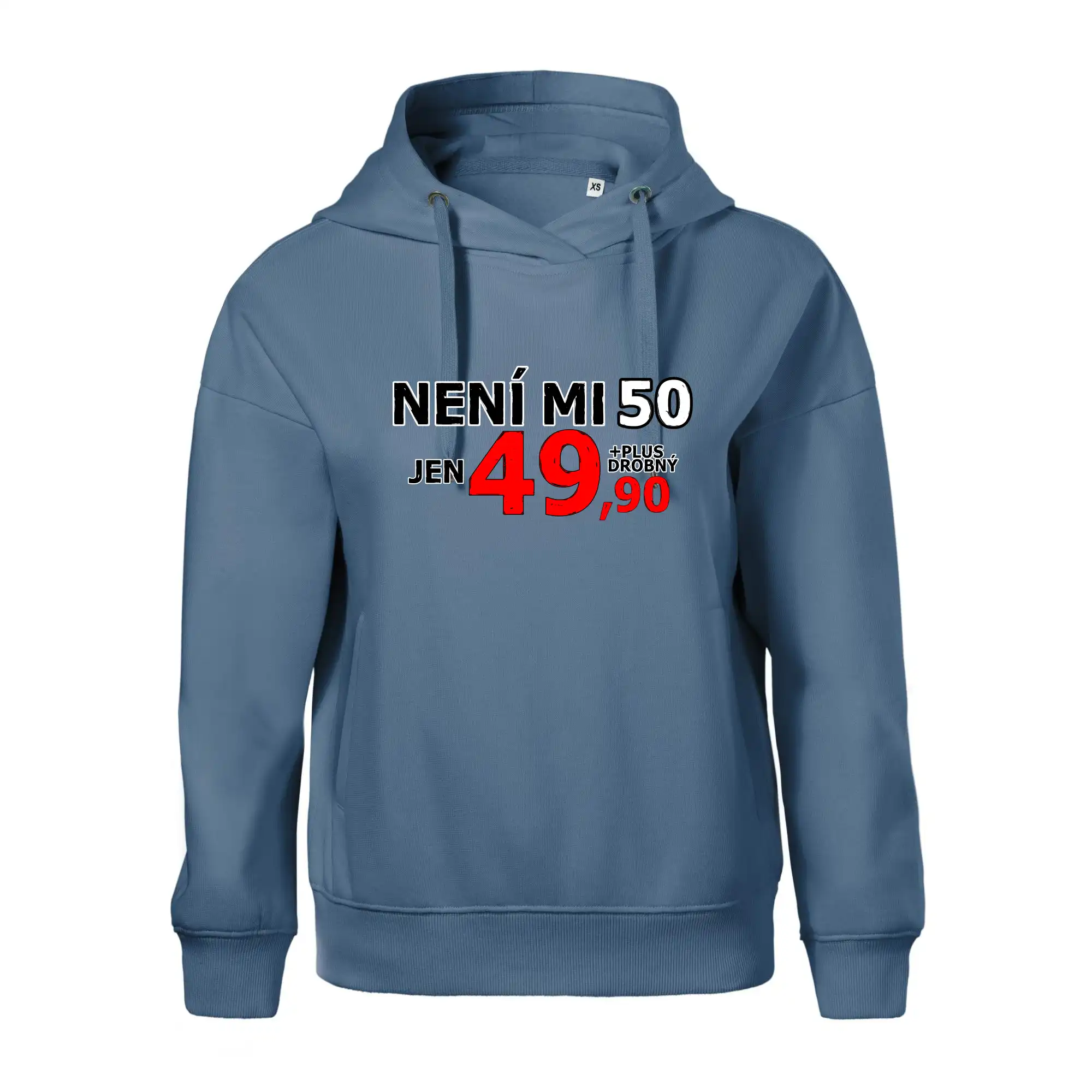 Triko s motivem "Není mi 50, jen 49,90 plus drobný". Narozeninové triko pro oslavence, který oslaví jubileum 50 let, ale připadá si mladší. Dárek k padesátinám. Triko k padesátým narozeninám.